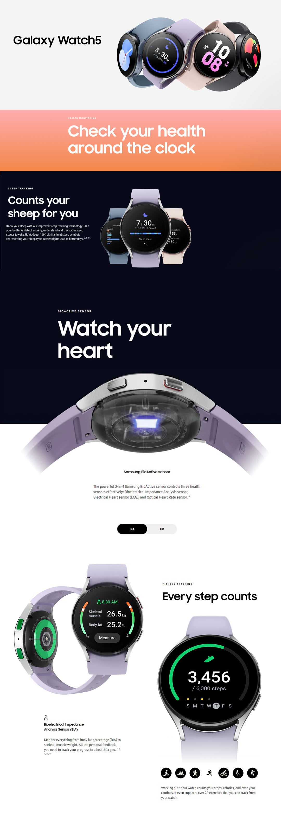 SAMSUNG Galaxy Watch5 Bluetooth 44mm | 1.4 Super AMOLED | 410mAh Battery | Heart Rate Sensor | Camera Controller | WiFi | NFC | GPS | Smart Watch with 1 Year Warranty