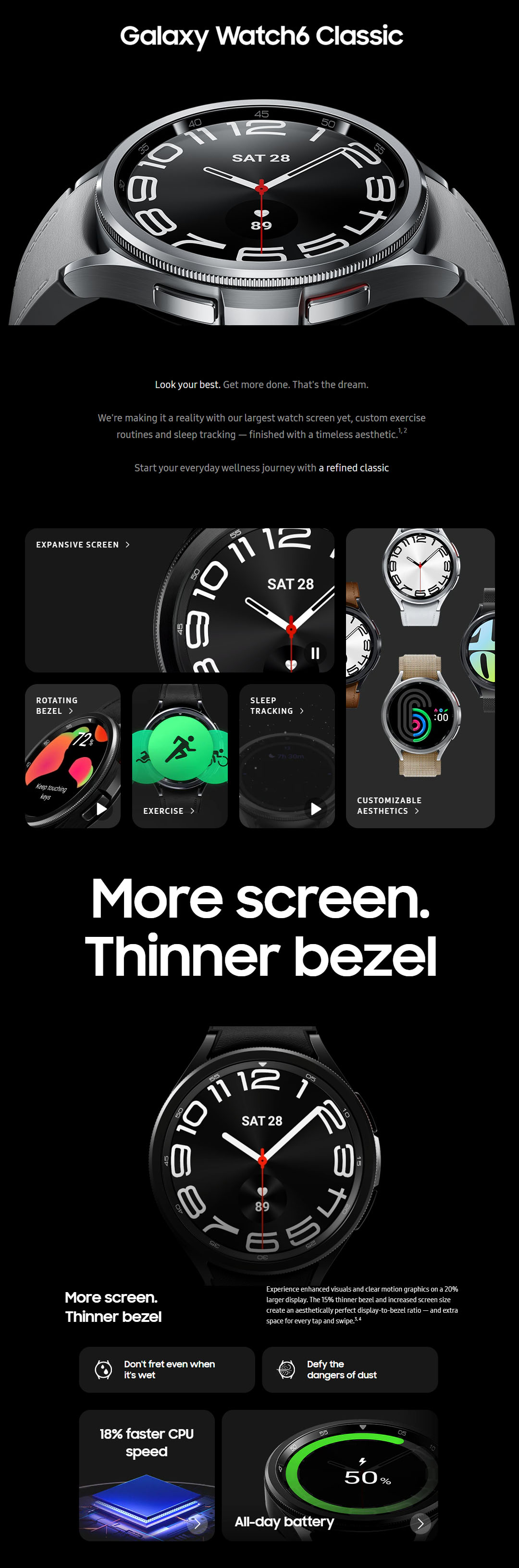 SAMSUNG Galaxy Watch6 Classic Bluetooth 43mm / 47mm | Sapphire Crystal | Fast Charge | Infrared Temperature Sensor | Sleep Tracking | Bluetooth v5.3 | Smart Watch with 1 Years Warranty
