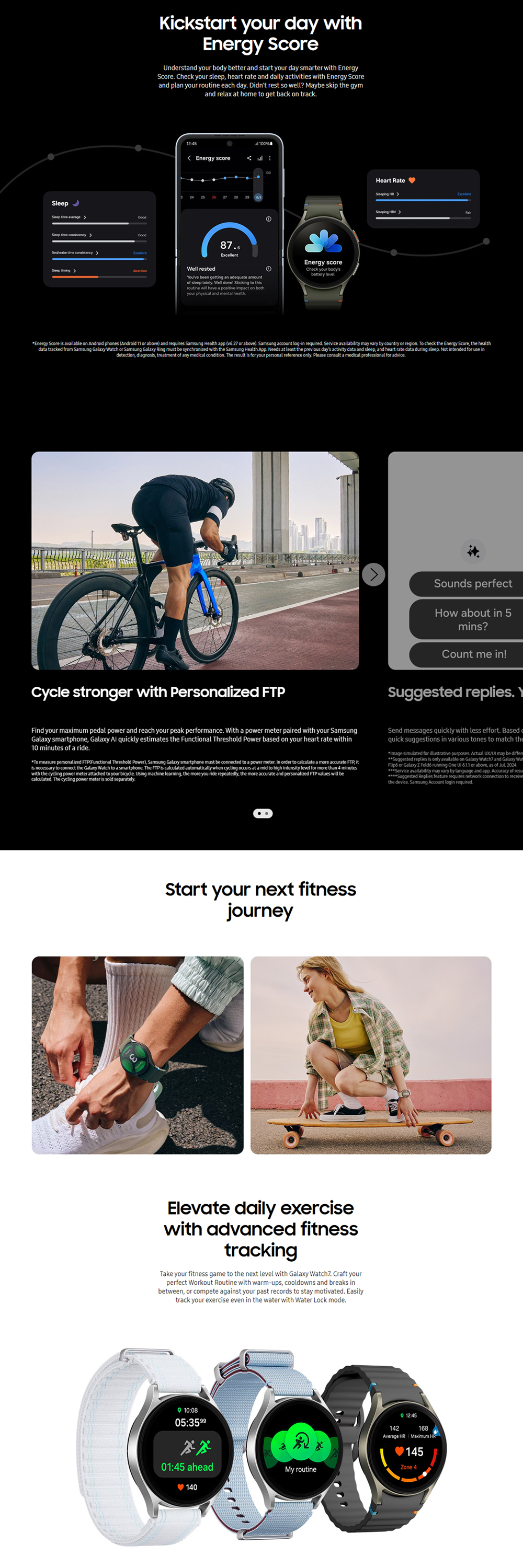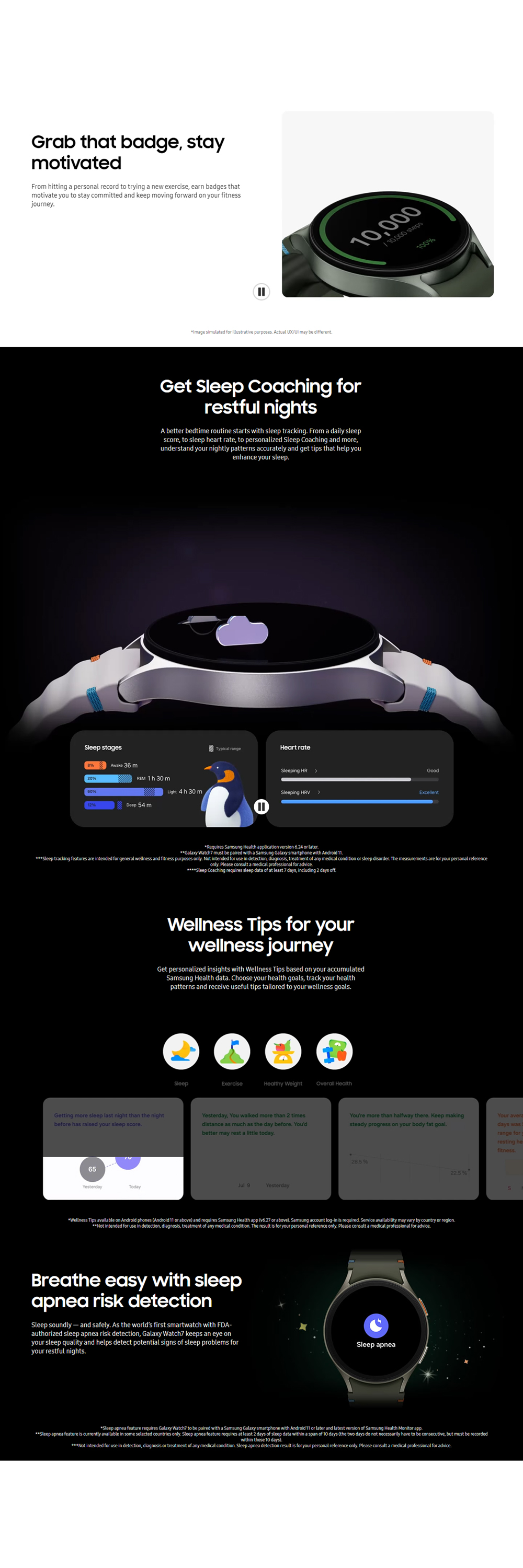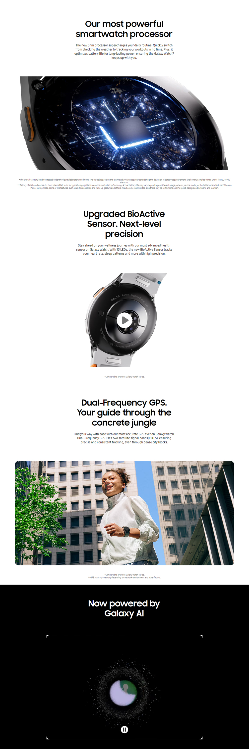▪ Galaxy AI-powered health insights ▪ Personalized Sleep Coaching ▪ Advanced fitness tracking ▪ Our most powerful processor