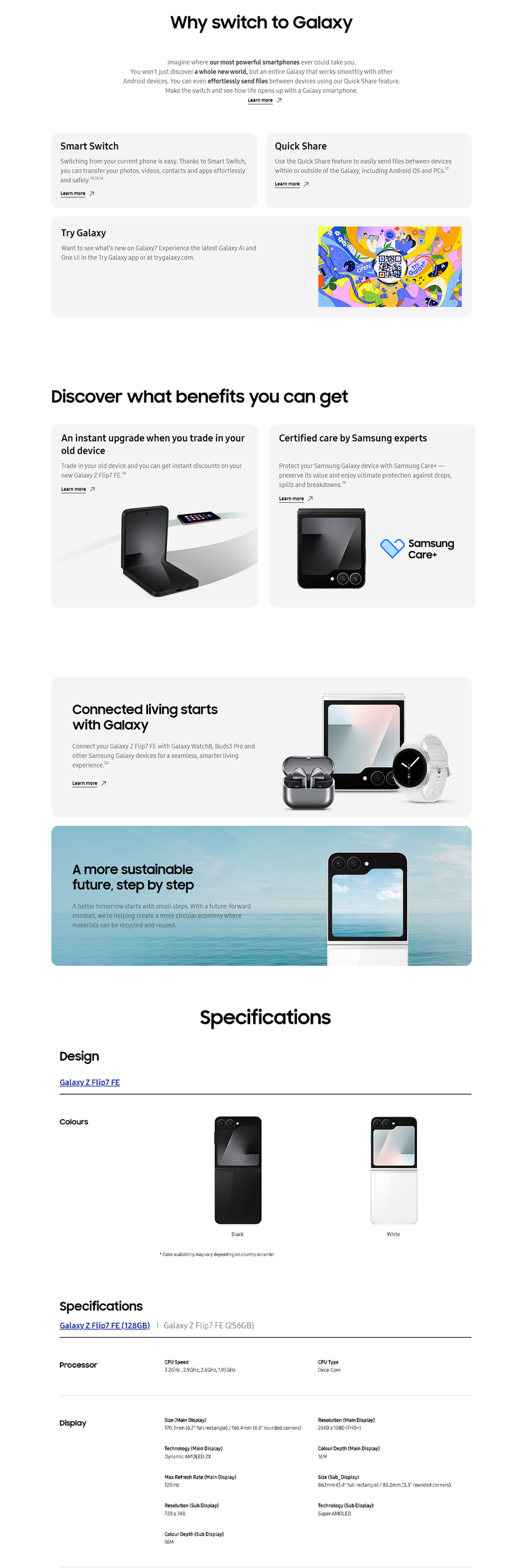 SAMSUNG Galaxy Z Flip7 FE | Pro-level 50 MP camera for selfies | One UI 8. All new for Flip | Efficient battery powers all-day use