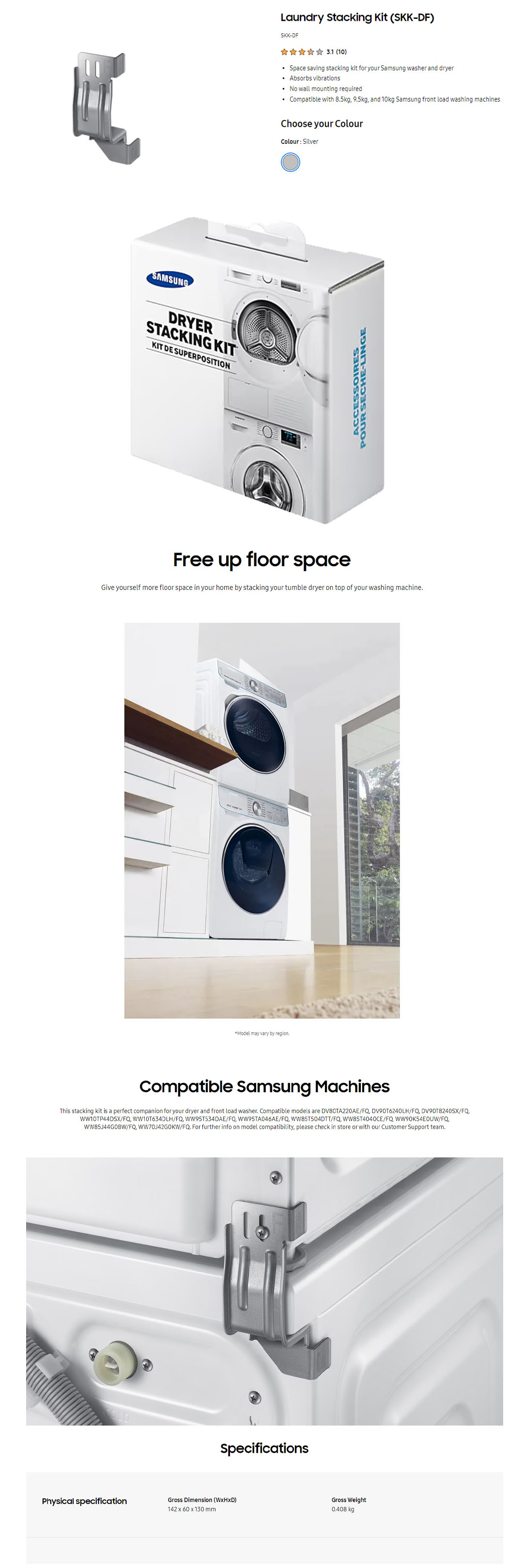 Samsung Laundry Stacking Kit SKK-DF | Space saving | No wall mounting required