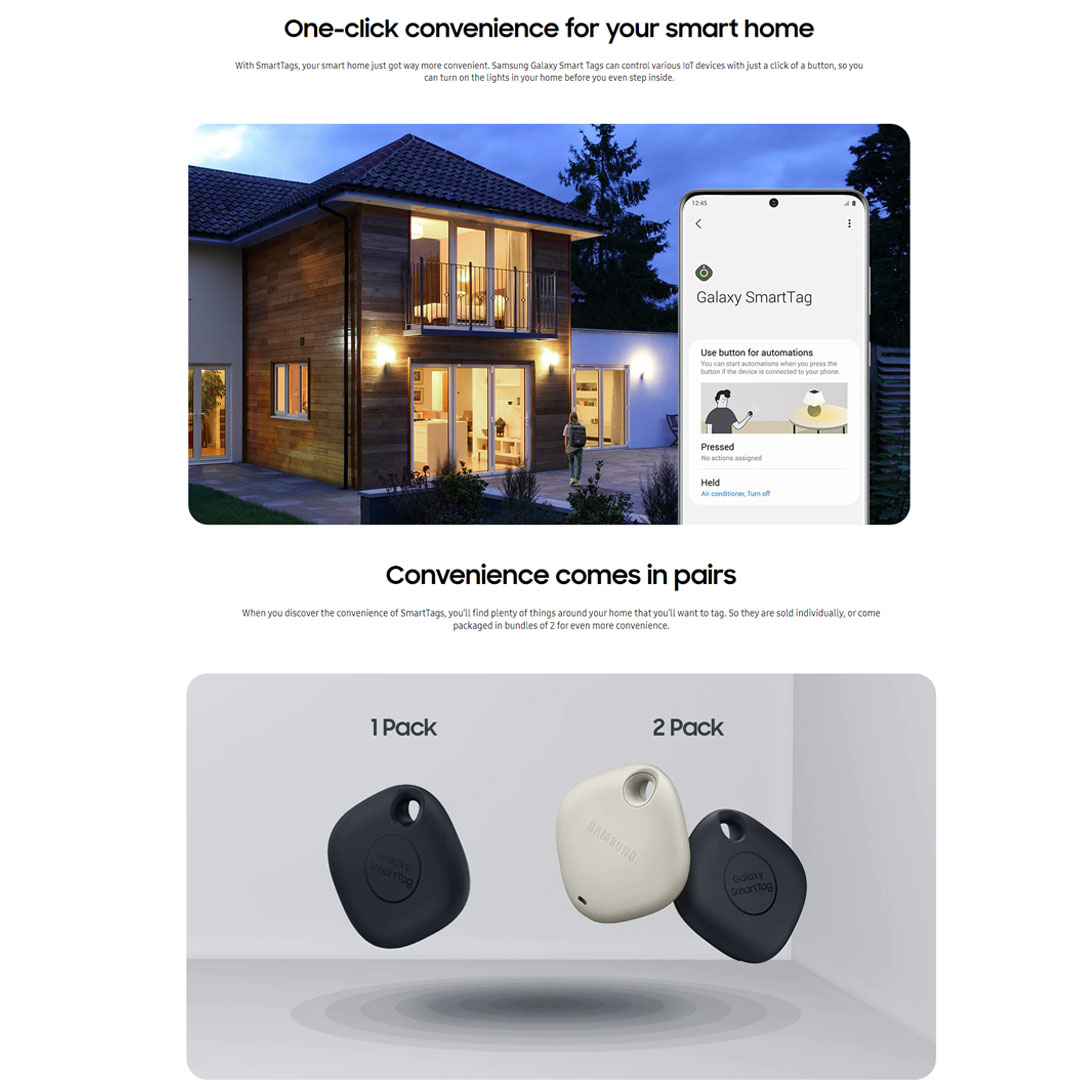 SAMSUNG Smart Tag EI-T5300BBEGWW | Nearby Find | Galaxy Find Network | One-touch IOT Control |