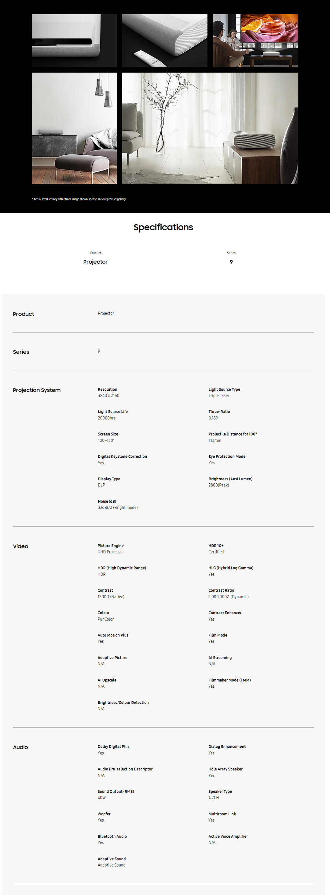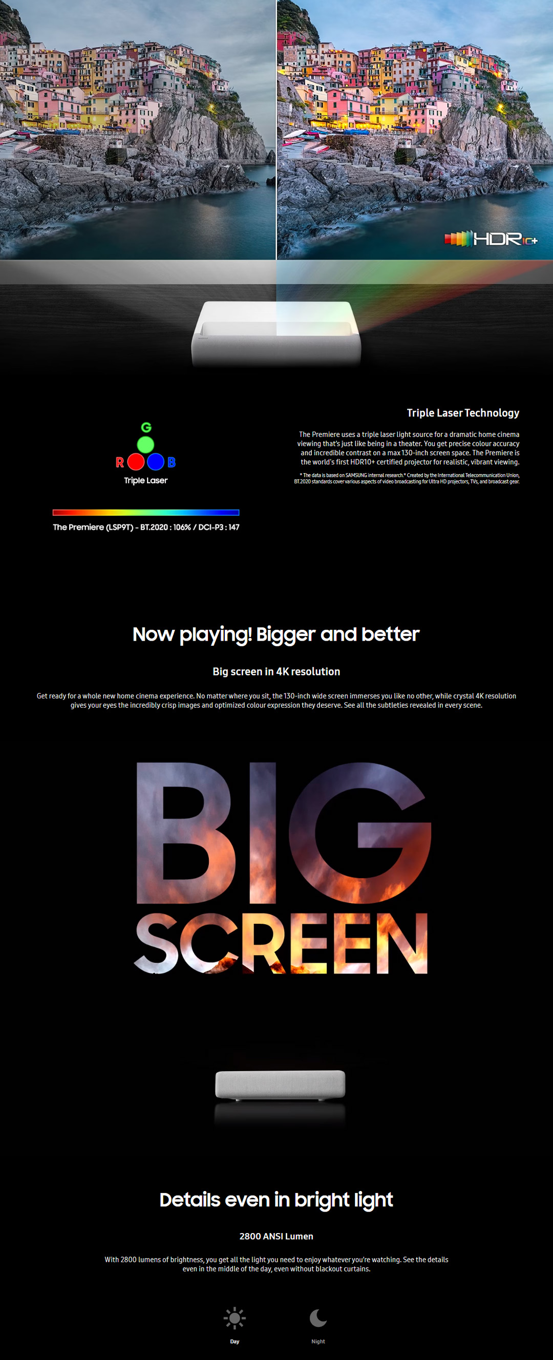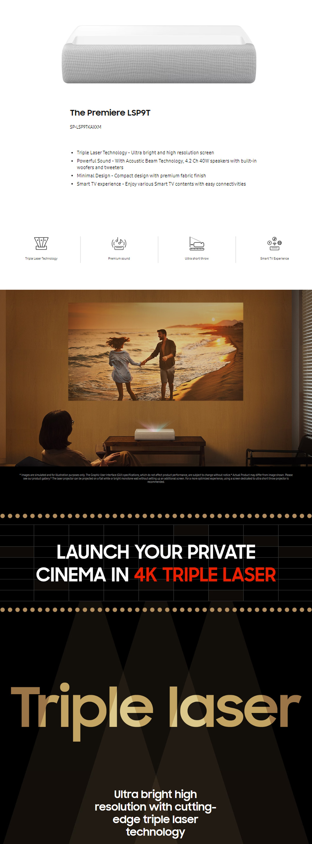 SAMSUNG The Premiere 4K Triple Laser Projector SP-LSP9TKAXXM | Triple Laser Technology | Premium Sound | Ultra Short Throw | Smart TV Experience | Projector with 2 Year Warranty