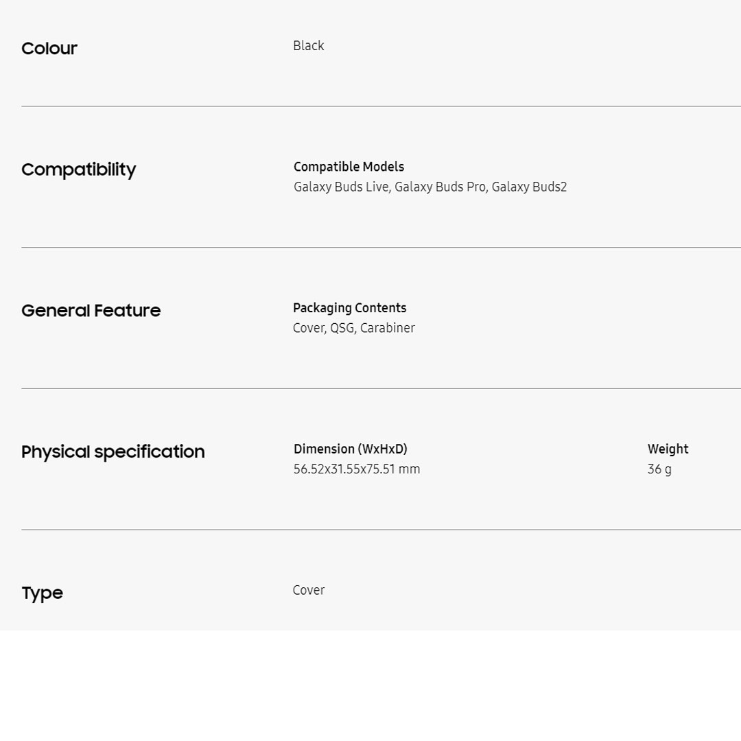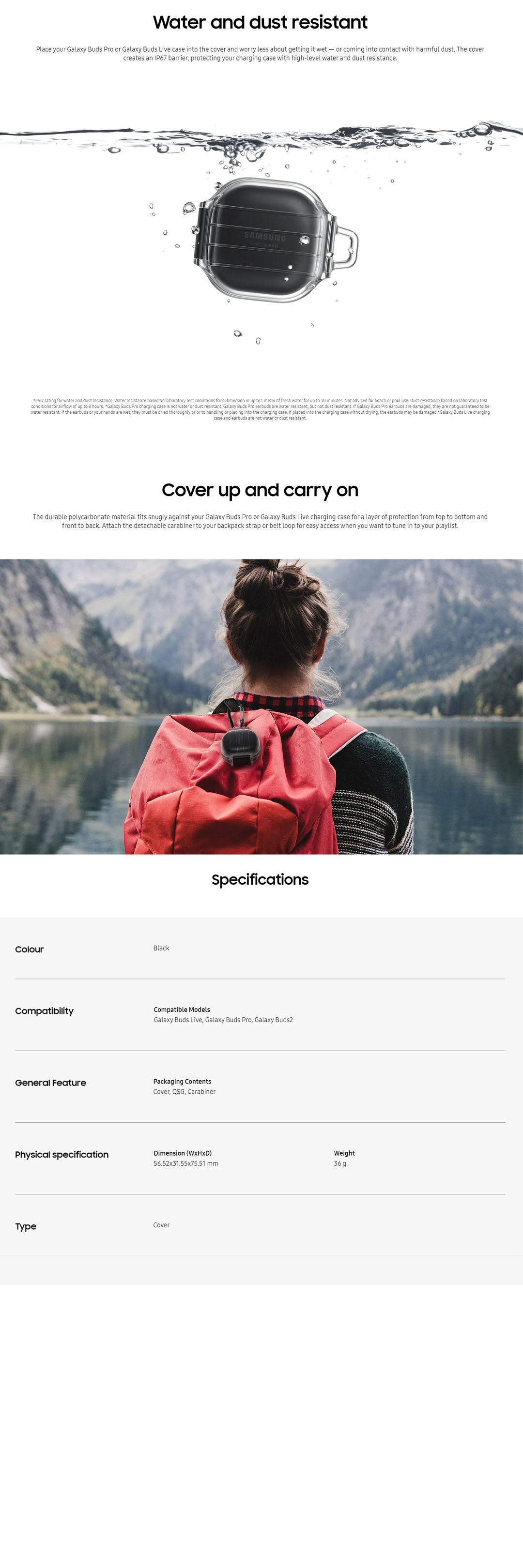 SAMSUNG Water Resistant Cover for Galaxy Buds Pro / Buds Live EF-PR190CBEGWW | Water and Dust Resistant | Detachable Carabiner | Compatible Models |