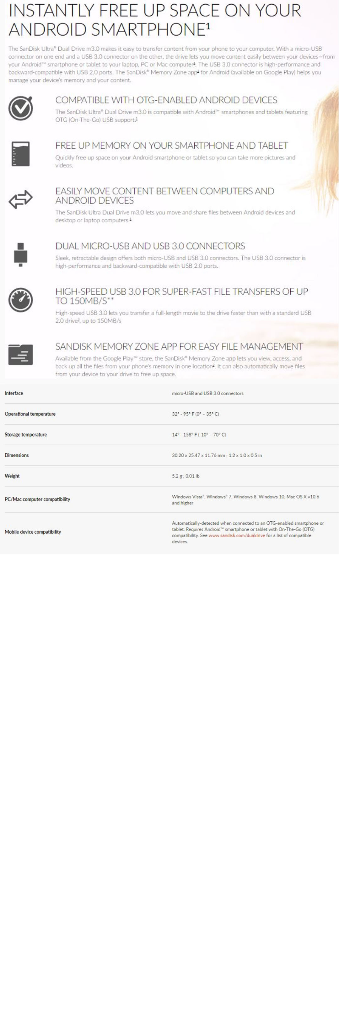 • Dual micro-USB and 3.0 connectors
