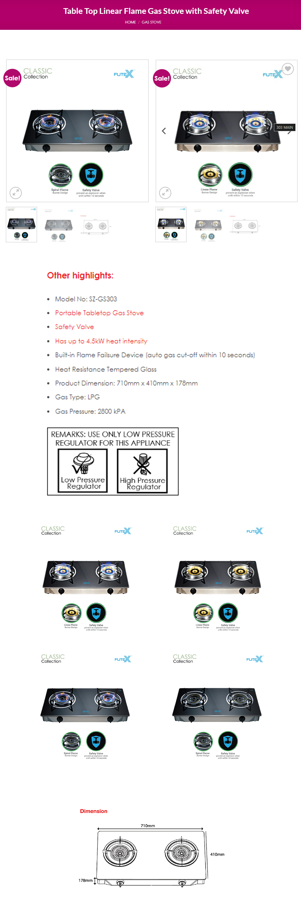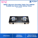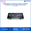 SENZ 2 Burners Portable Table Top SPIRAL/LINEAR FLAME Gas Stove with Safety Valve SZ-GS202/SZ-GS303| Futex Glass Heat Resistance
