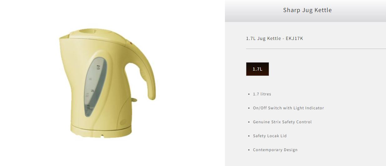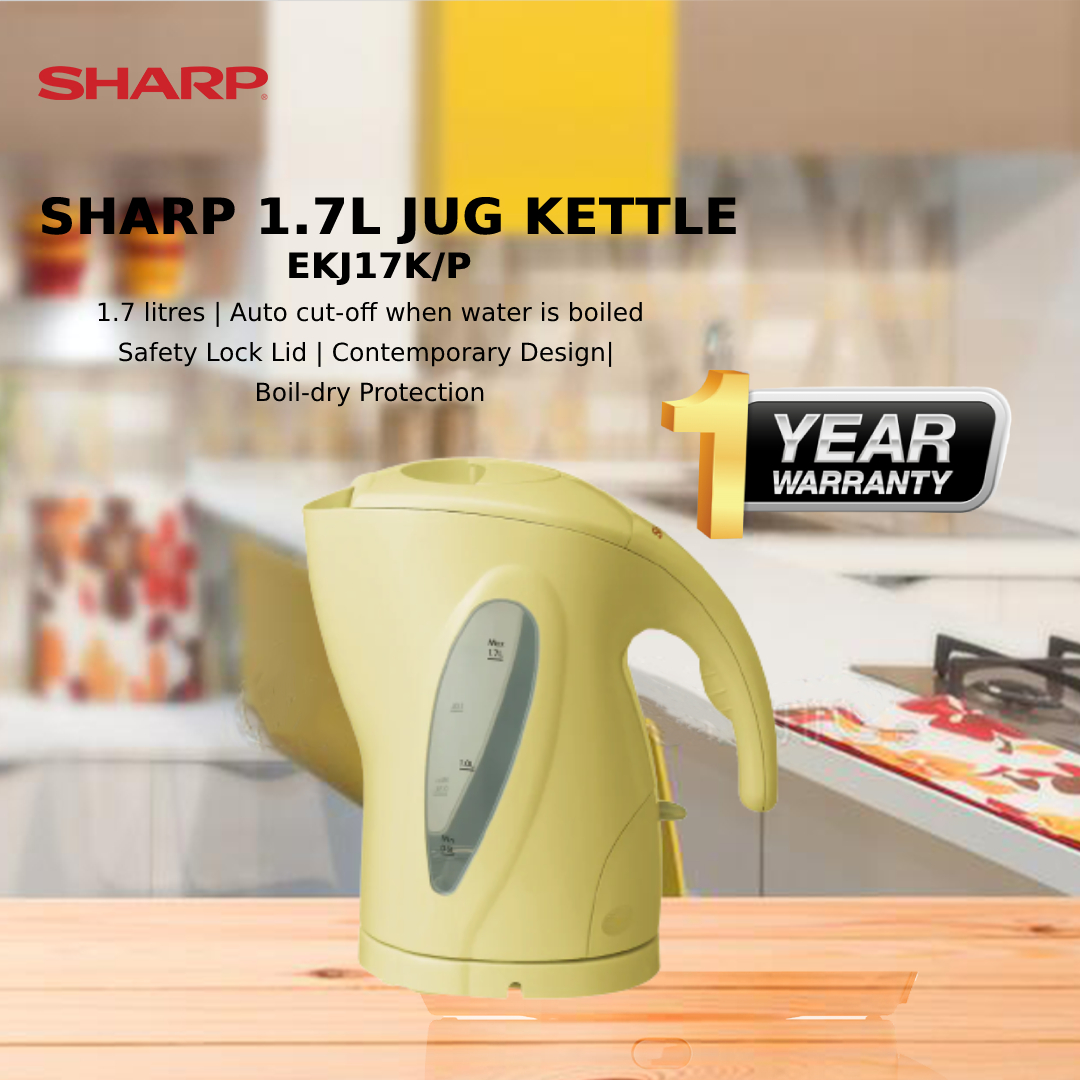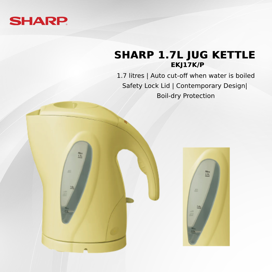 SHARP 1.7L Jug Kettle EKJ17K/P | On/Off Switch with Light Indicator | Genuine Strix Safety Control | Safety Lock Lid | Contemporary Design | Kettle with 1 Year Warranty