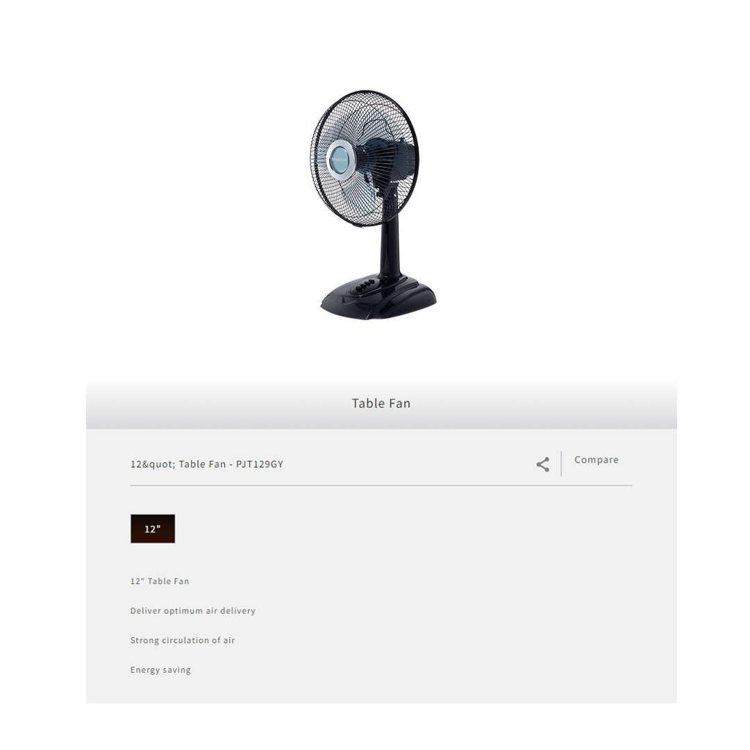 SHARP 12" Table Fan PJT129GY | 5 Star Energy Rating | 3 Blades | 3 Speeds | Table Fan with 1 Year Warranty