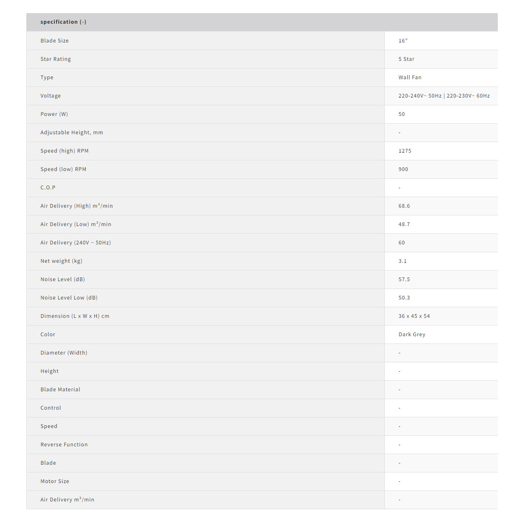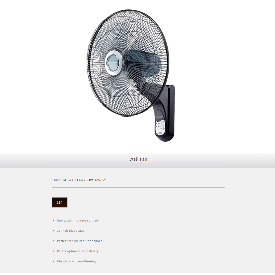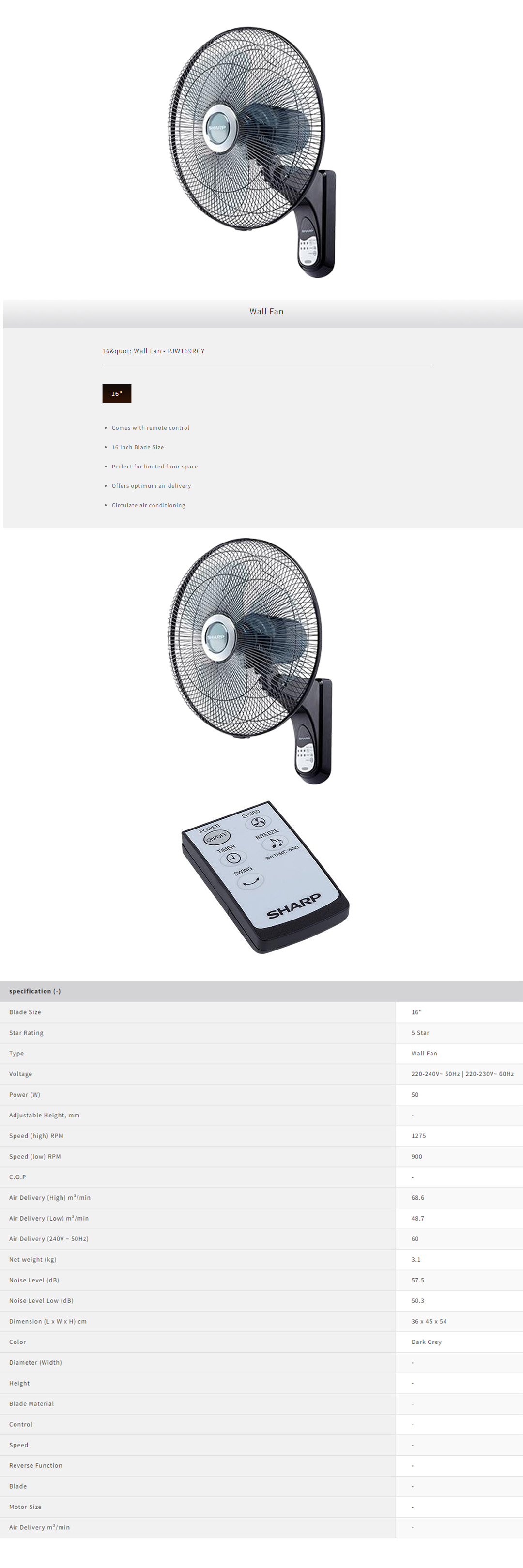 Sharp 16" Wall Fan Dark PJW169RGY | Comes with Remote Control | Perfect for Limited Floor Space | Offers Optimum Air Delivery | Circulate Air Conditioning | Wall Fan with 1 Year Warranty