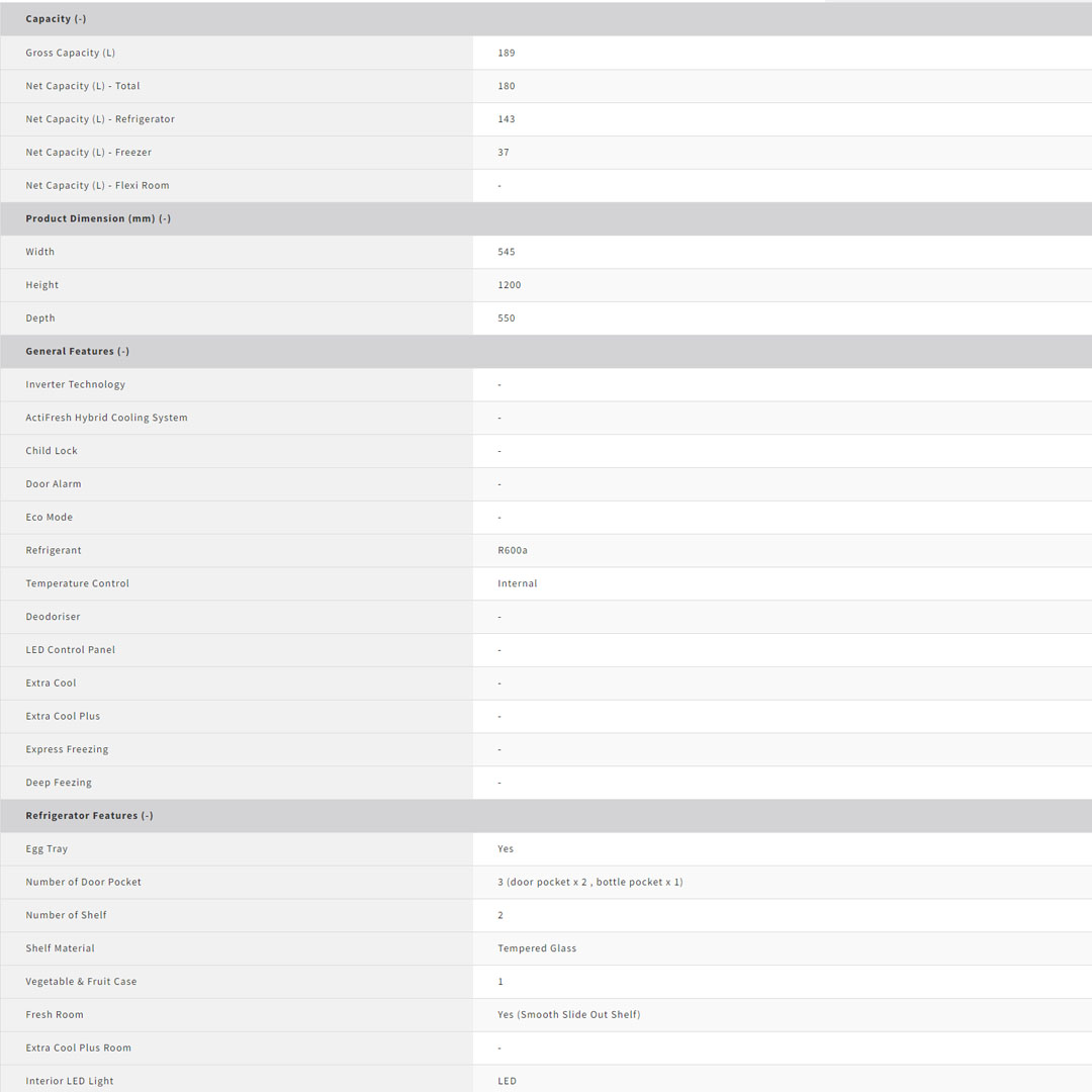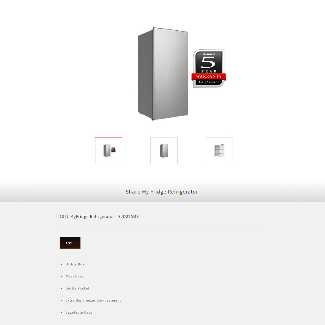 Sharp 189L 1 Door My Fridge Refrigerator SJD220MS | Utility Box | Meat Case | Bottle Pocket | Vegetable Case | Extra Big Freezer Compartment | Refrigerator with 1 Year Warranty
