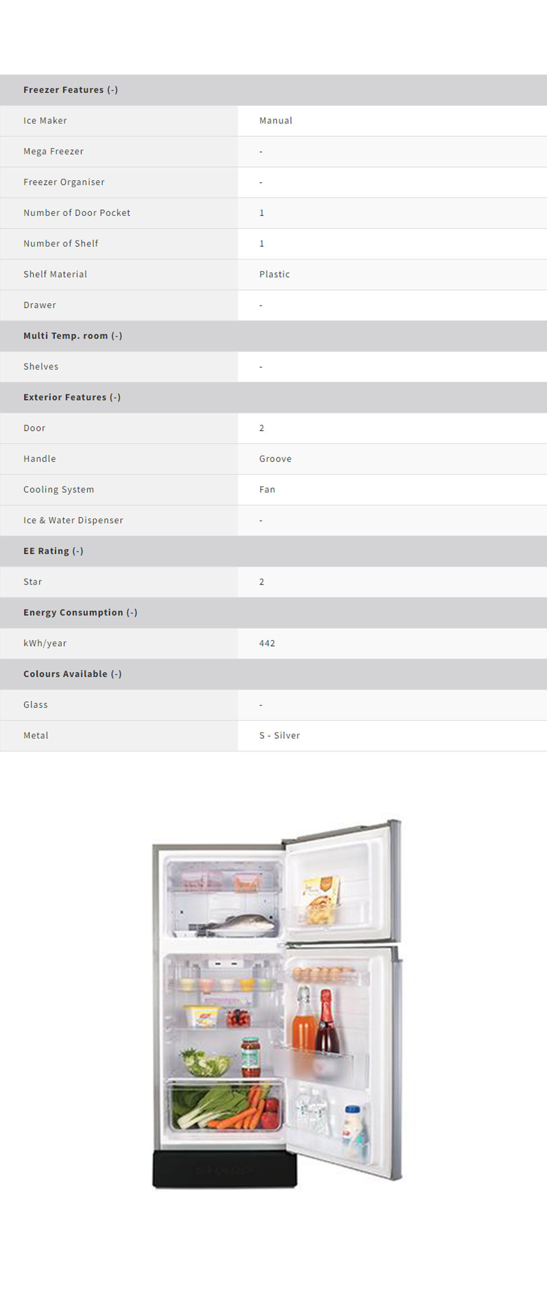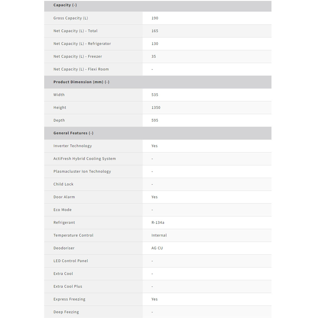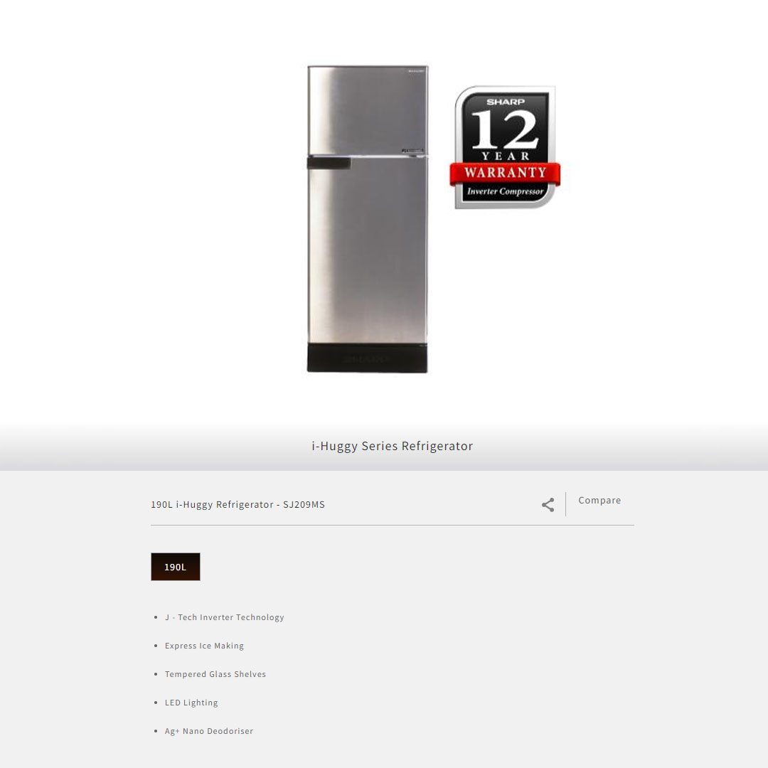 SHARP 190L 2 Door Top Mount Inverter Refrigerator SJ209MS | J - Tech Inverter Technology | Ag+ Nano Deodoriser | Express Ice Making | Refrigerator with 1 Year General Warranty & 12 Years Compressor Warranty