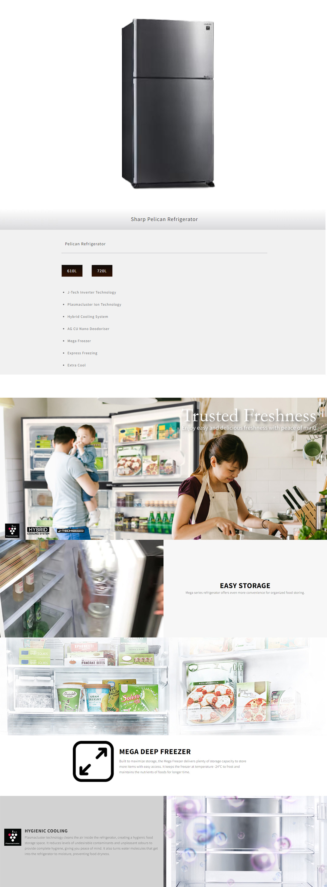 SHARP 2 Doors Top Mount Pelican J-Tech Inverter Refrigerator SJP601MFMS/SJP801MFMS | Extra Cool | Eco Mode | Door Alarm | Deep Freezing | Refrigerator with 1 Year Warranty