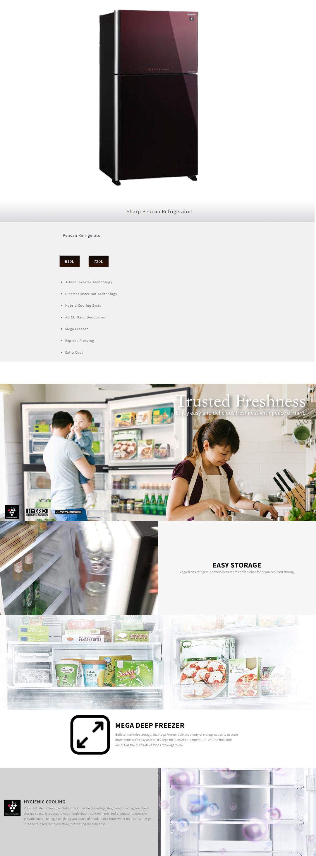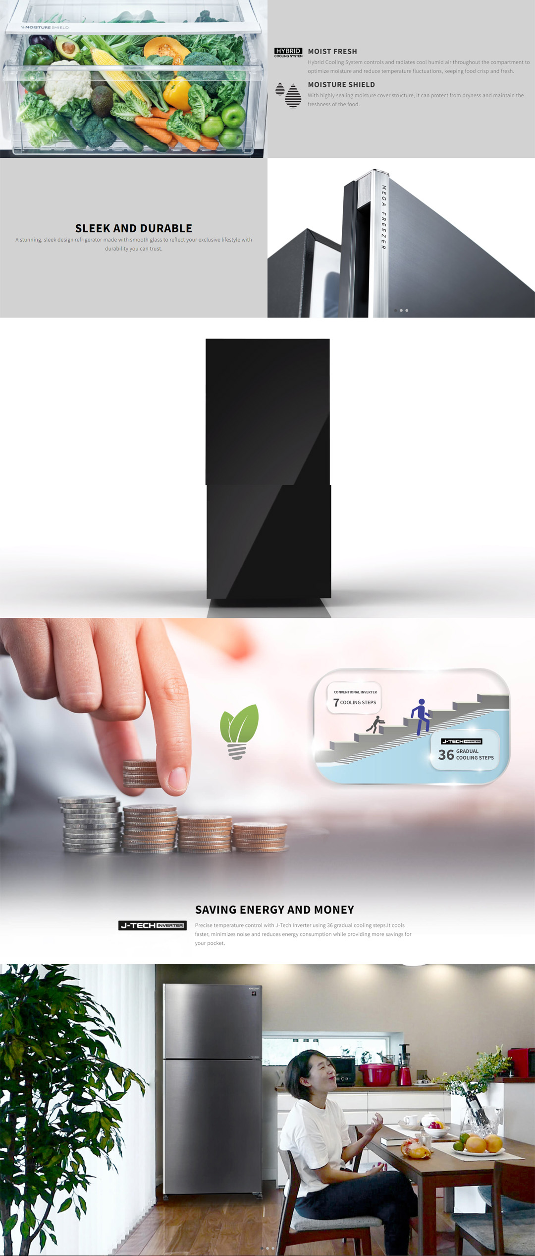 SHARP 2 Doors Top Mount Pelican J-Tech Inverter Refrigerator SJP682MFGM/SJP882MFGM | Extra Cool | Eco Mode | Door Alarm | Deep Freezing | Refrigerator with 1 Year Warranty