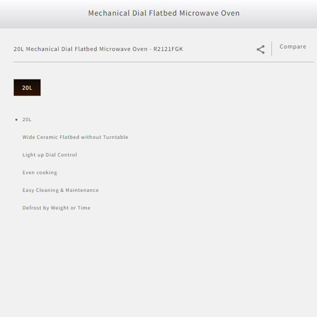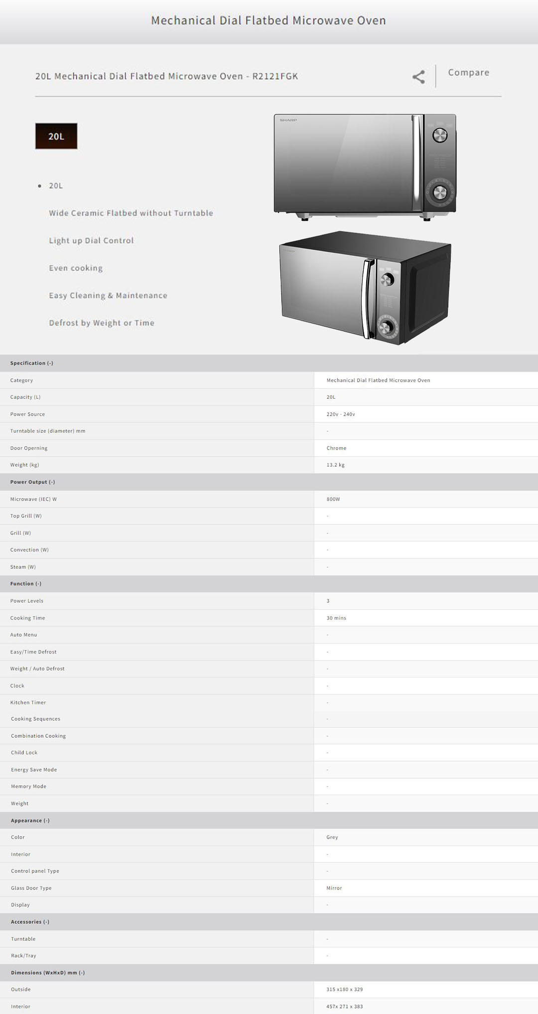 SHARP 20L Mechanical Dial Flatbed Microwave Oven R2121FGK | Wide Ceramic Flatbed without Turntable | Light Up Dial Control | Even Cooking | Easy Cleaning & Maintenance Defrost by Weight or Time | Microwave Oven with 1 Year General Warranty