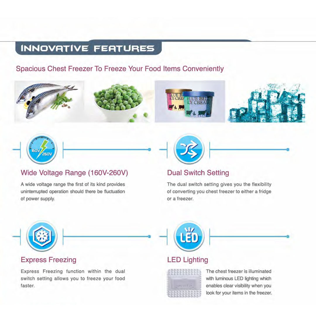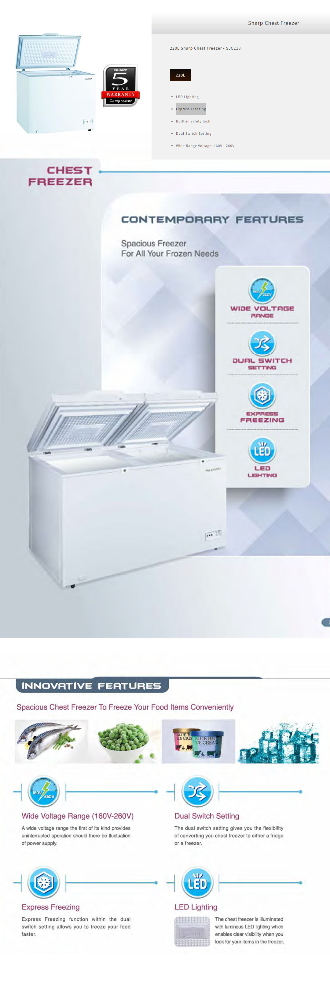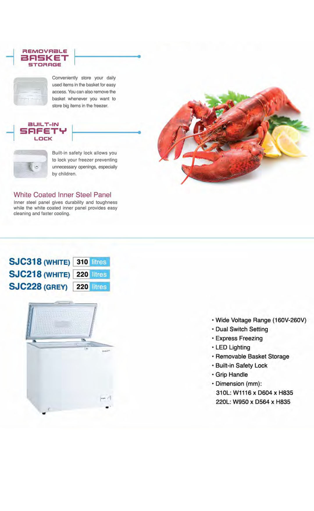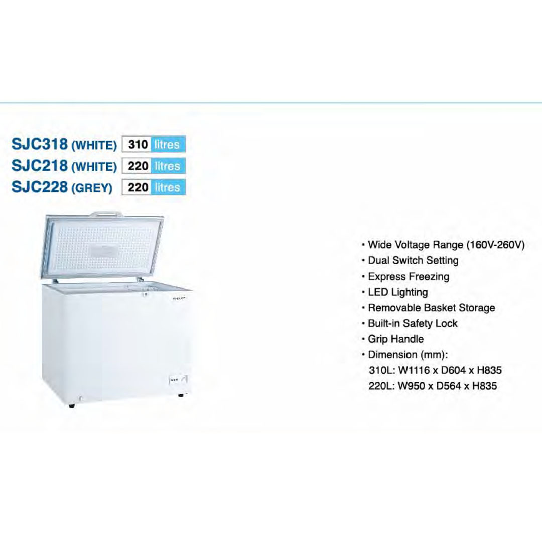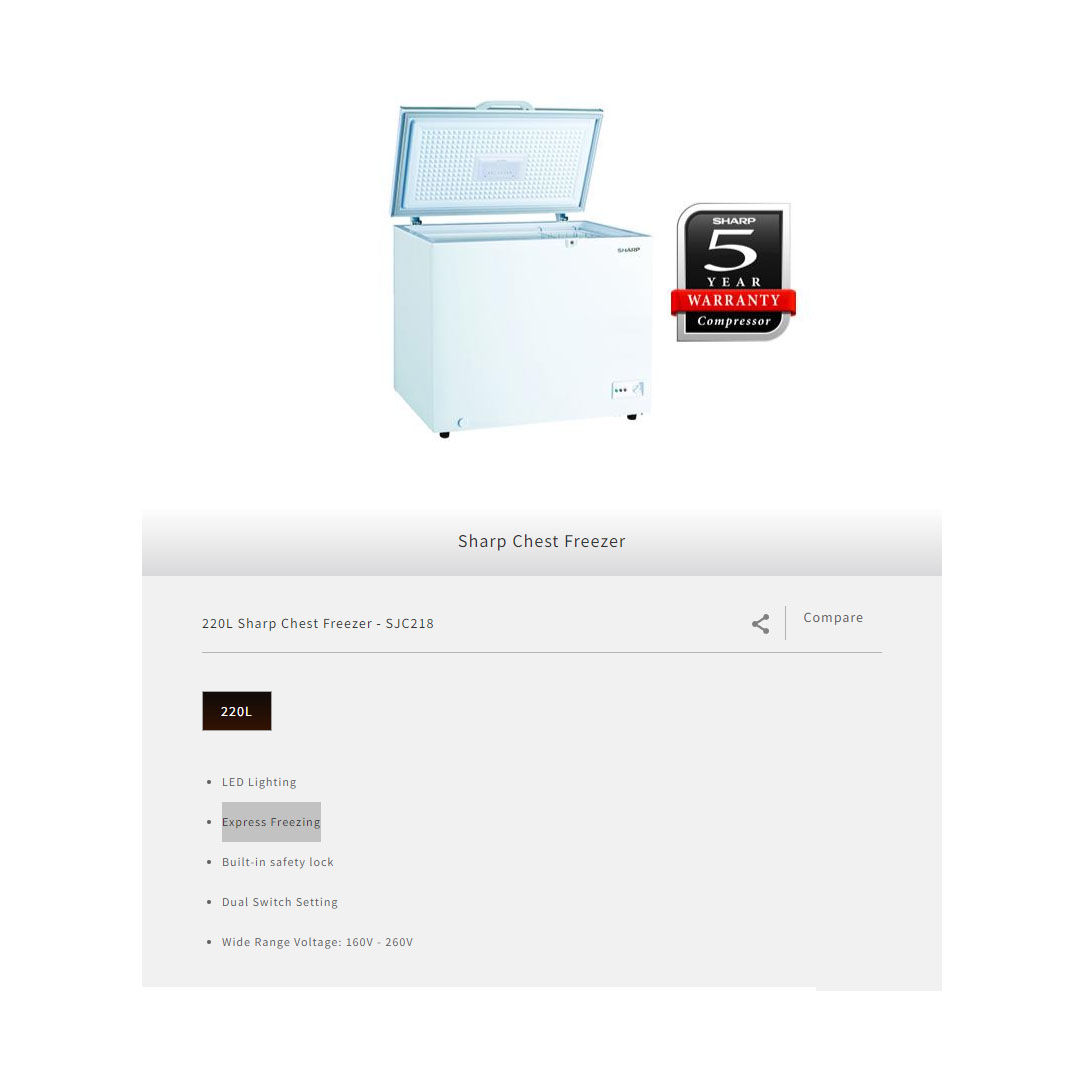 SHARP 220L Chest Freezer SJC218 | Express Freezing | Built-in Safety Lock | Dual Switch Setting | Chest Freezer with 1 Year General Warranty & 5 Years Compressor Warranty