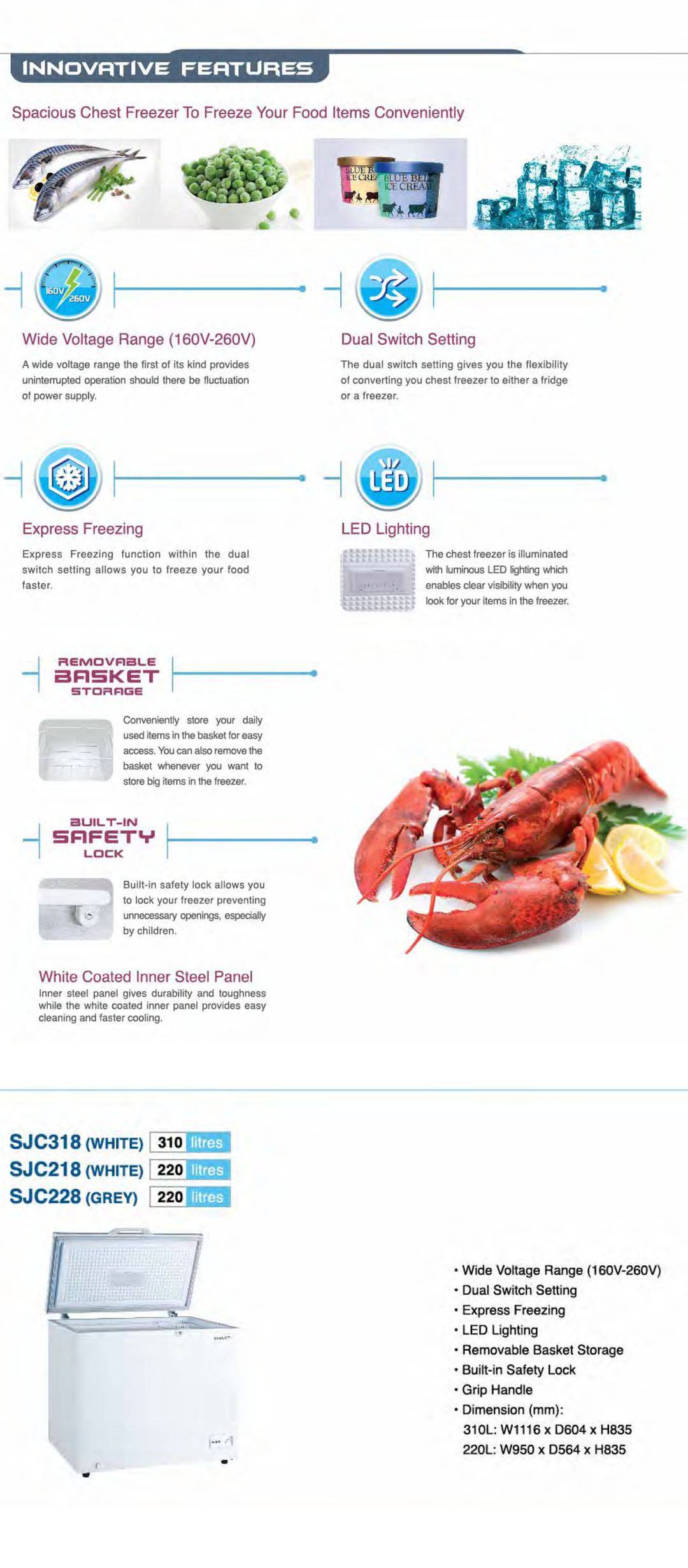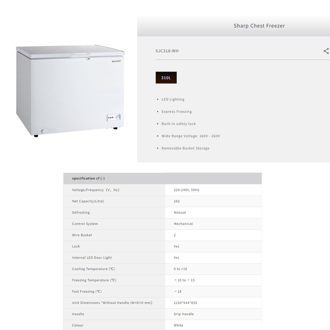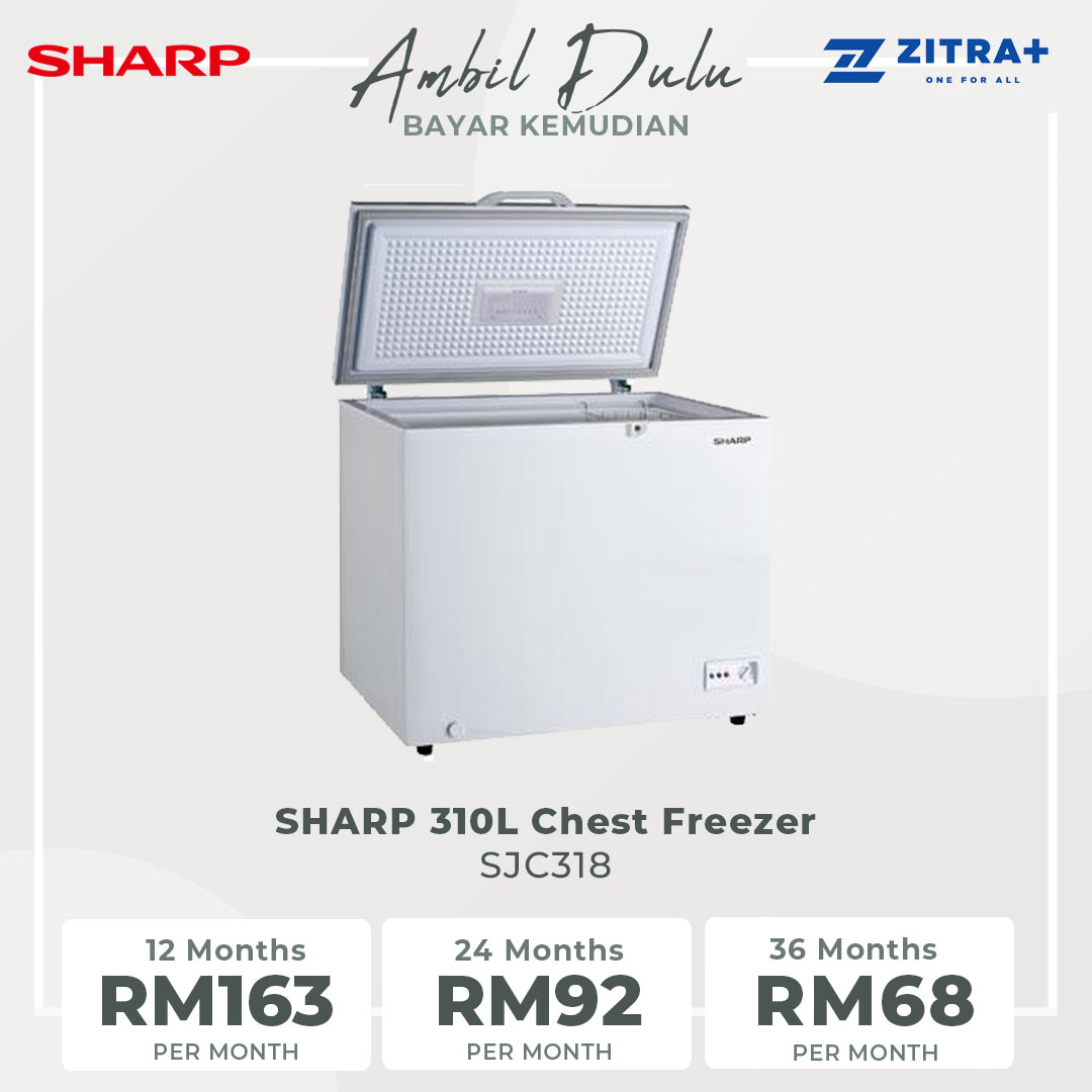 SHARP 310L Chest Freezer SJC318 | Express Freezing | Built-in Safety Lock | Removable Basket Storage | Chest Freezer with 1 Year General Warranty & 5 Years Compressor Warranty