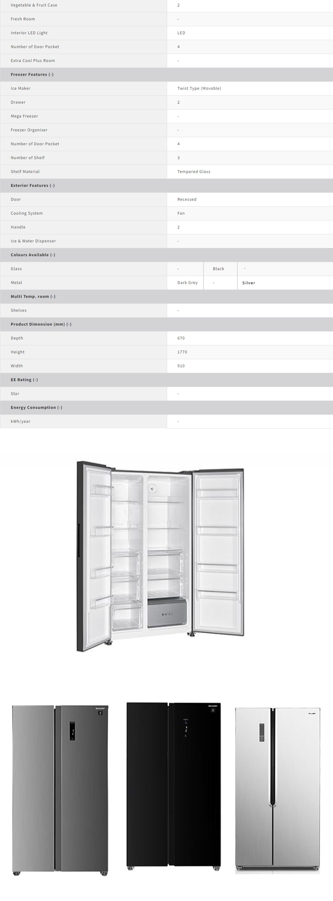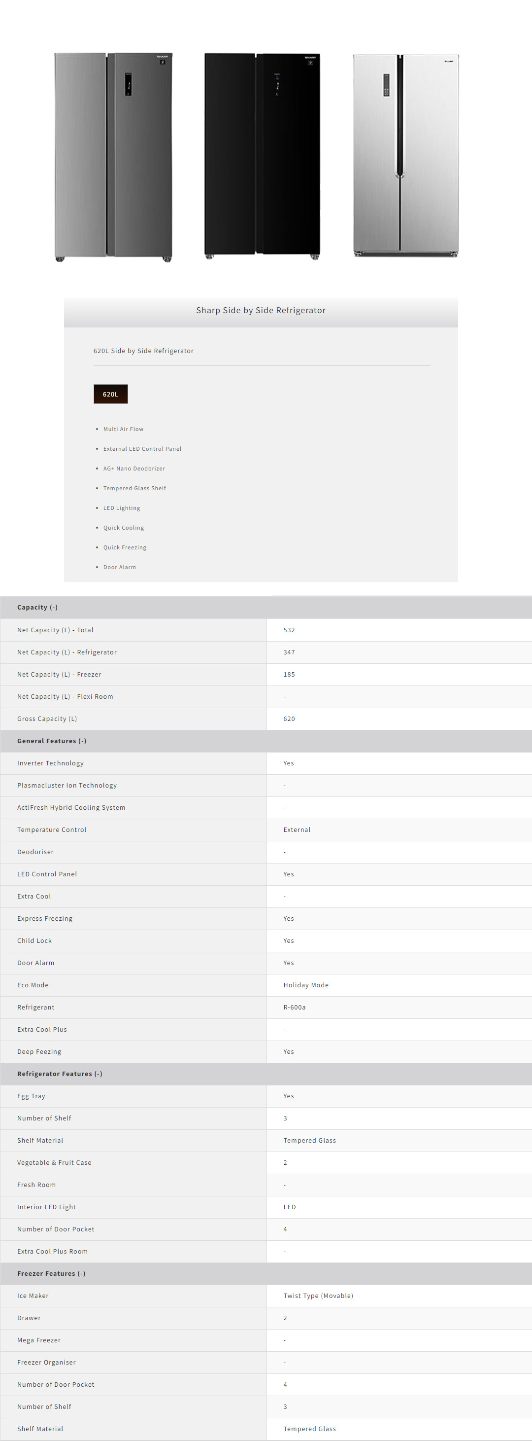 SHARP 620L Side by Side Inverter Refrigerator | Deep Freezing | Holiday Mode | Child Lock | Door Alarm | Refrigerator with 1 Year Warranty