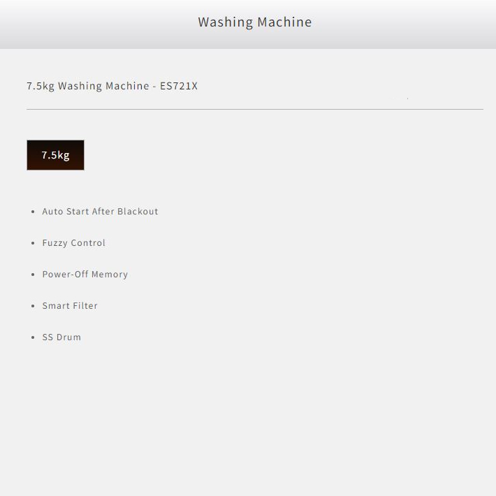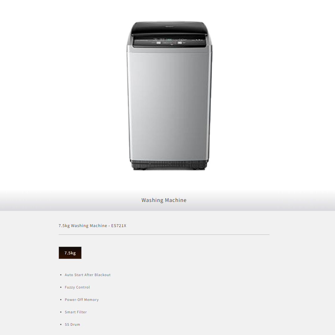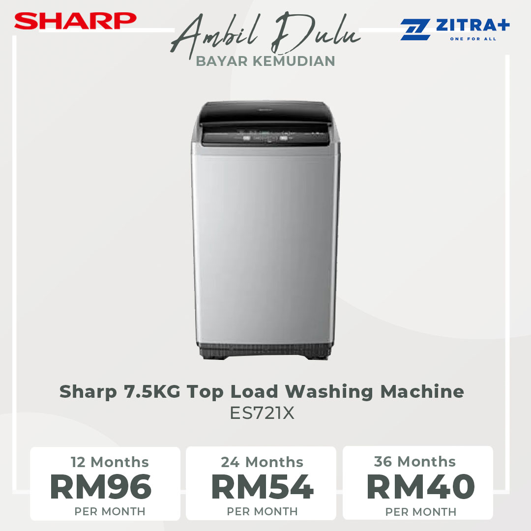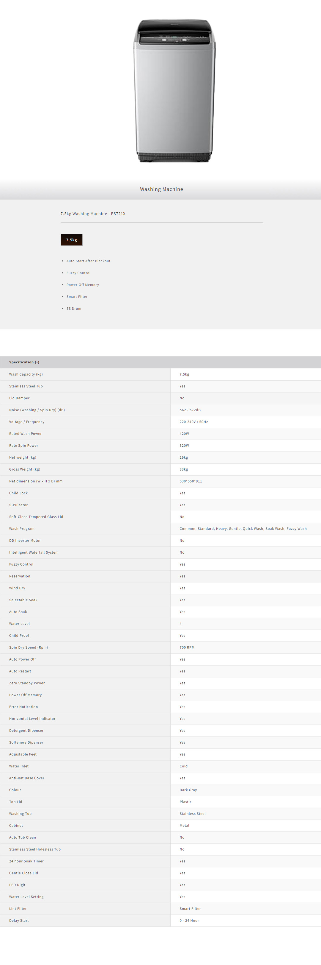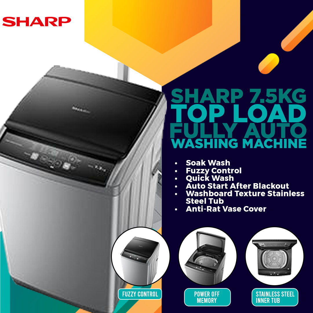 SHARP 7.5kg Top Load Fully Auto Washing Machine ES721X | Auto Start After Blackout | Fuzzy Control | Power-Off Memory | Smart Filter | SS Drum | Washing Machine with 2 Year General Warranty & 3 Year Panel Warranty & 10 Year Motor Warranty