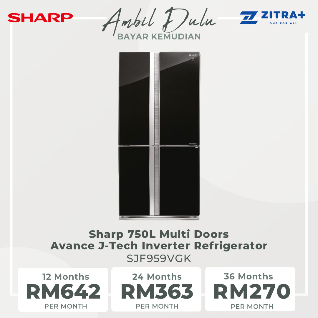 Sharp 750L Multi Doors Avance J-Tech Inverter Refrigerator SJF959VGK | Door Alarm | Eco Mode | Extra Cool | Express Freezing | LED Control Panel | Ice Maker | Refrigerator with 1 Year Warranty