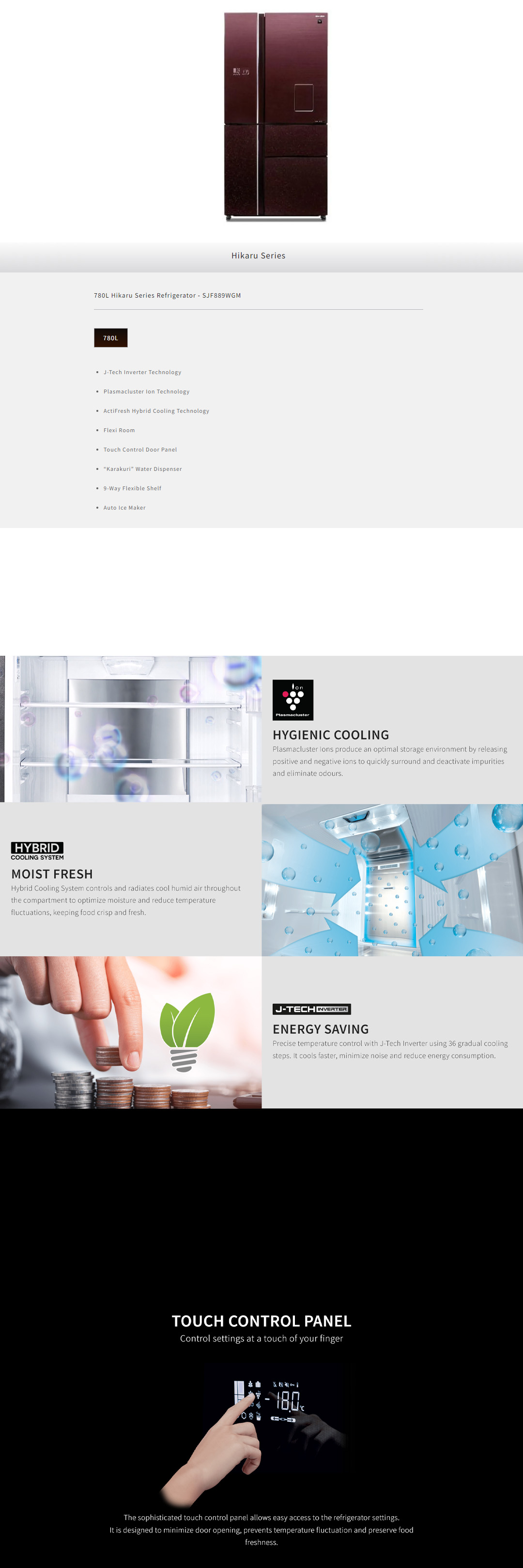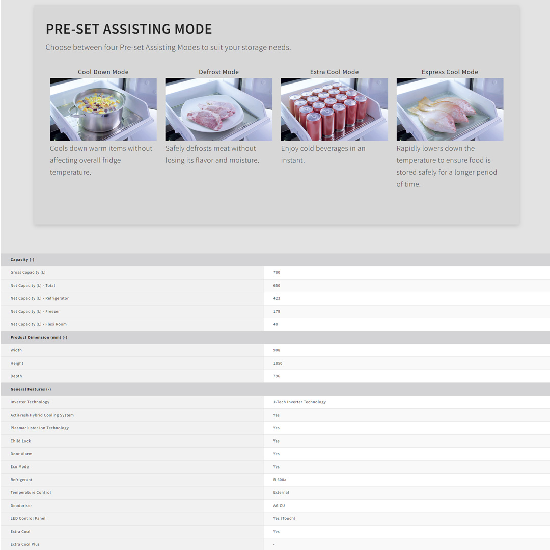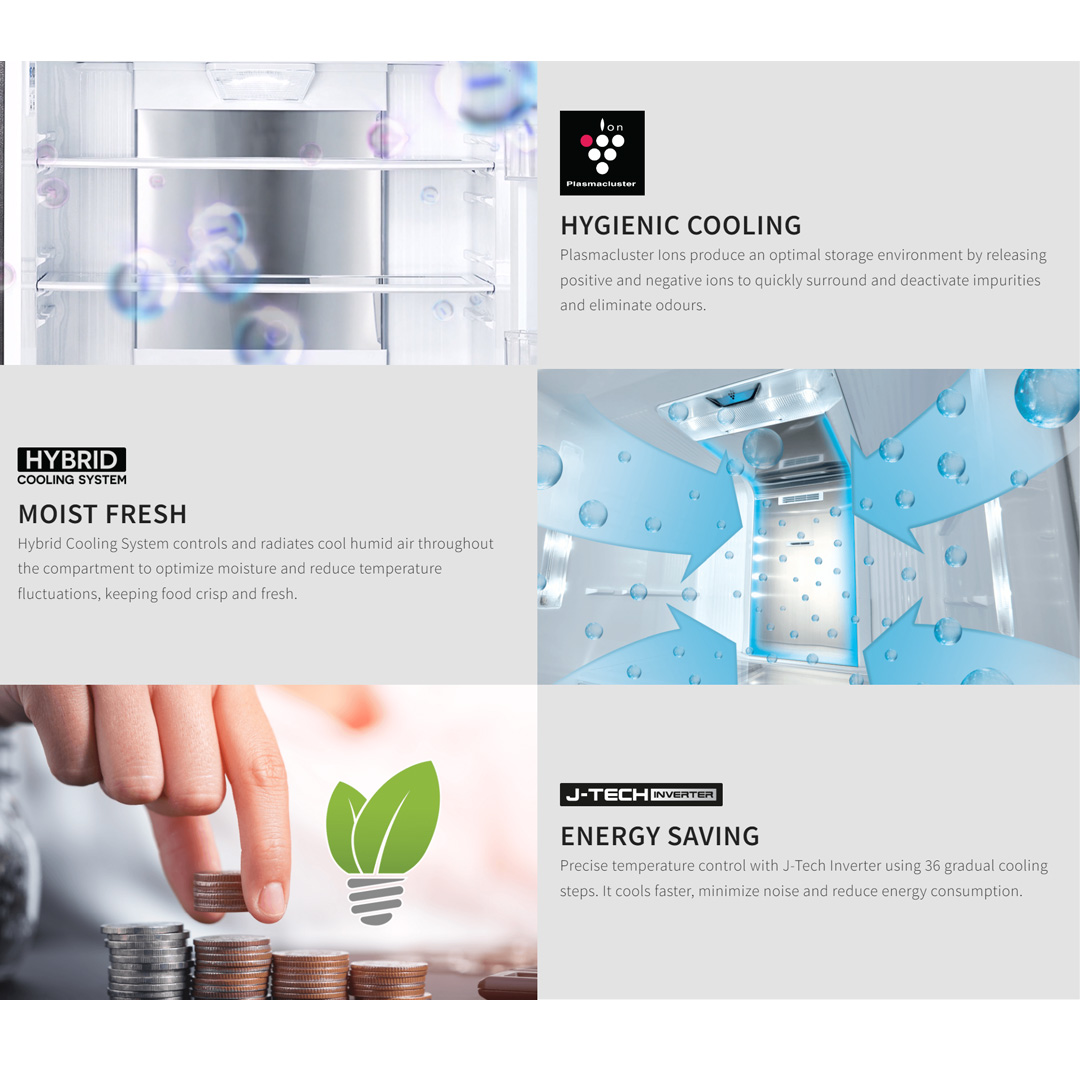 Sharp 780L Multi Doors Hikaru J-Tech Inverter Refrigerator SJF889WGM | Plasmacluster Ion Technology | ActiFresh Hybrid Cooling Technology | Touch Control Door Panel | “Karakuri” Water Dispenser | Auto Ice Maker | Refrigerators with 1 Year Warranty