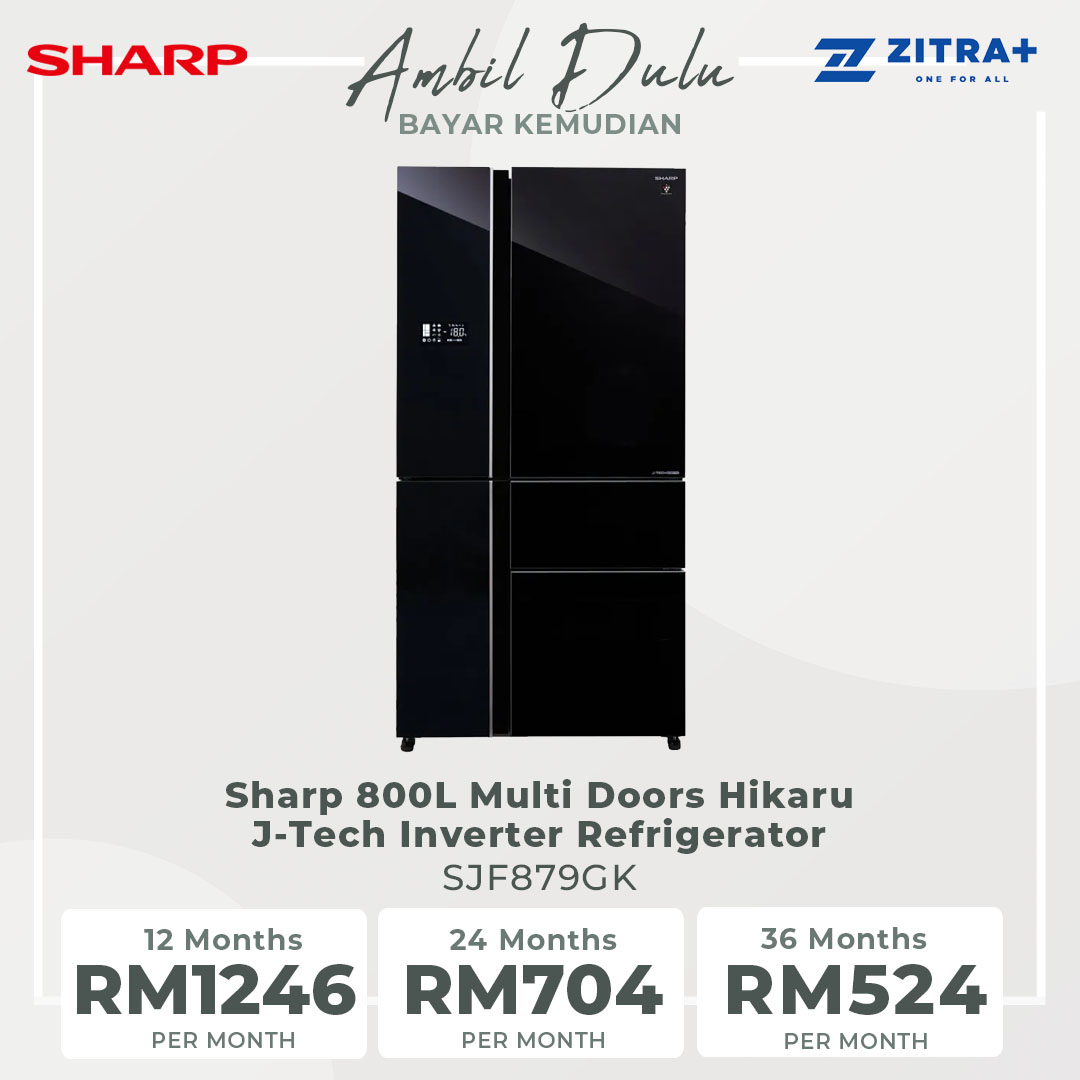Sharp 800L Multi Doors J-Tech Inverter Hikaru Refrigerator SJF879GK | Flexi Room | Touch Control Door Panel | Auto Ice Maker | Plasmacluster Ion Technology | Actifresh Hybrid Cooling Technology | Refrigerator with 1 Year General & 12 Year Motor Warranty