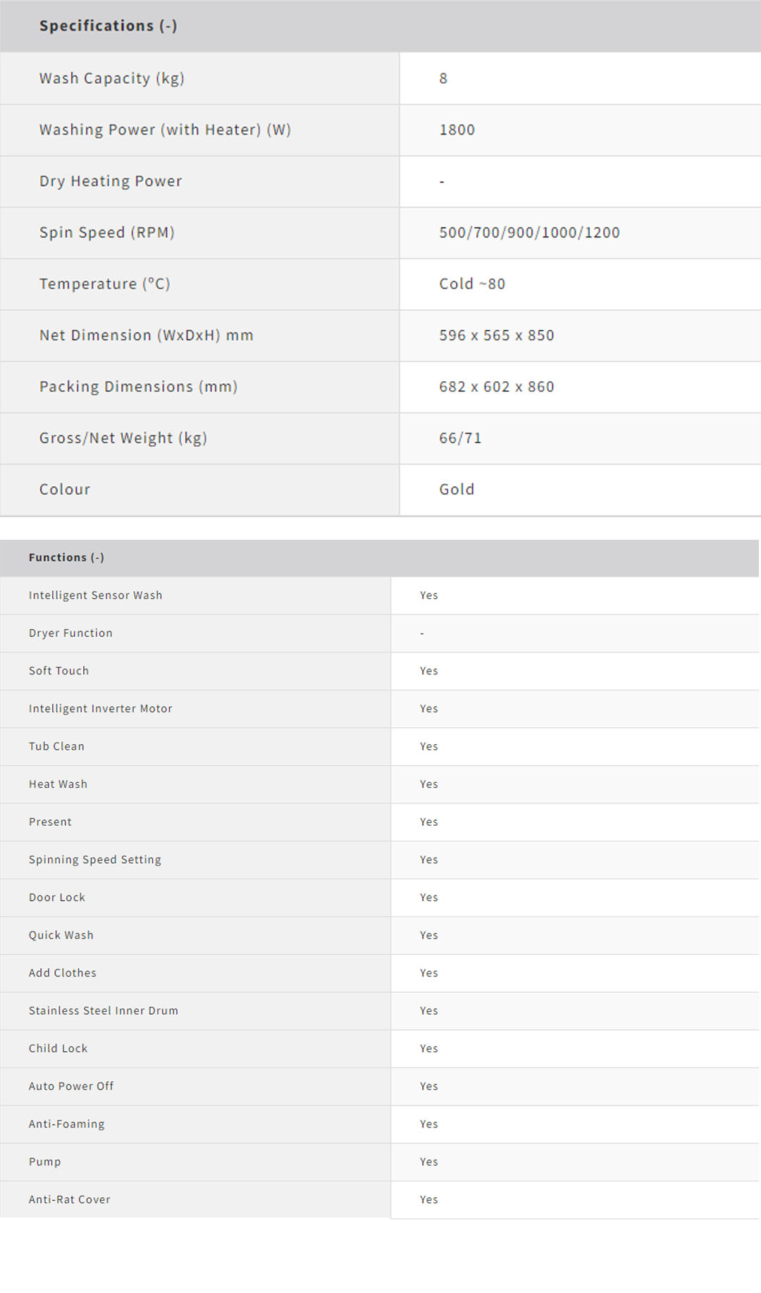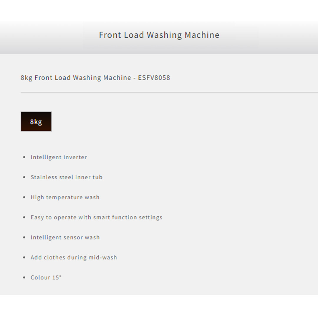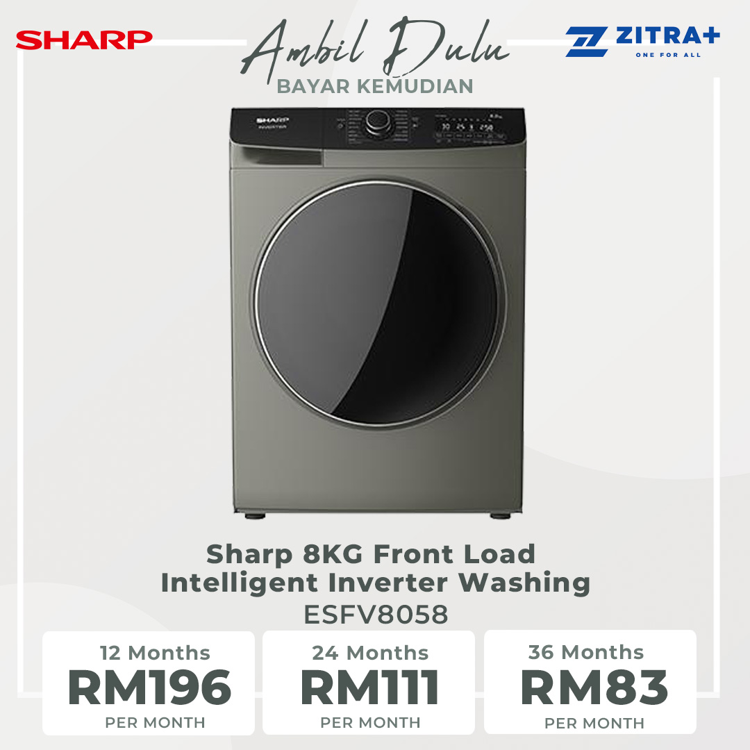 Sharp 8KG Front Load Washing Machine ESFV8058 | Intelligent Inverter | Stainless Steel Inner Tub | High Temperature Wash | Intelligent Sensor Wash | Door Lock | Quick Wash | Child Lock | Auto Power Off | Washing Machine with 2 Year Warranty