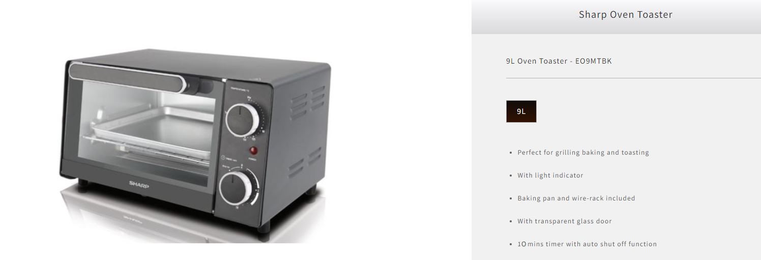 SHARP 9L Oven Toaster EO9MTBK | Perfect for Grilling Baking & Toasting | With Light Indicator | Baking Pan & Wire-rack Included | 10 Mins Timer with Auto Shut Off Function | Oven Toaster with 1 Year Warranty