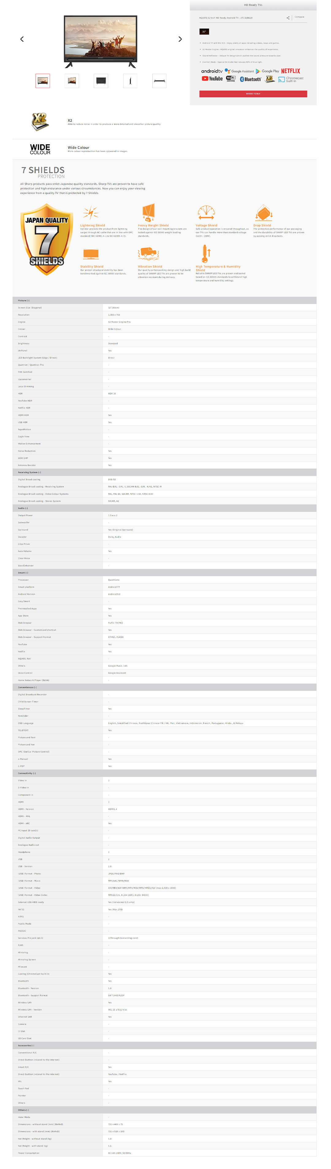 SHARP AQUOS 32" HD Ready Andriod TV 2TC32BG1X | X2 Master Engine | Sound Reflector | Google Assistant | YouTube Netflix | LED TV with 2 Years Warranty