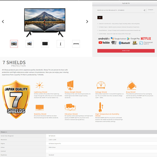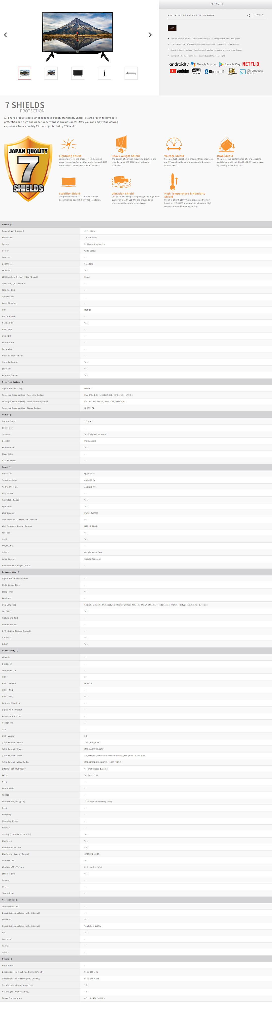 SHARP AQUOS 42" Full HD Android TV 2TC42BG1X | Sound Reflector | Youtube Netflix | Google Assistant | Comfort Mode | LED TV with 2 Years Warranty