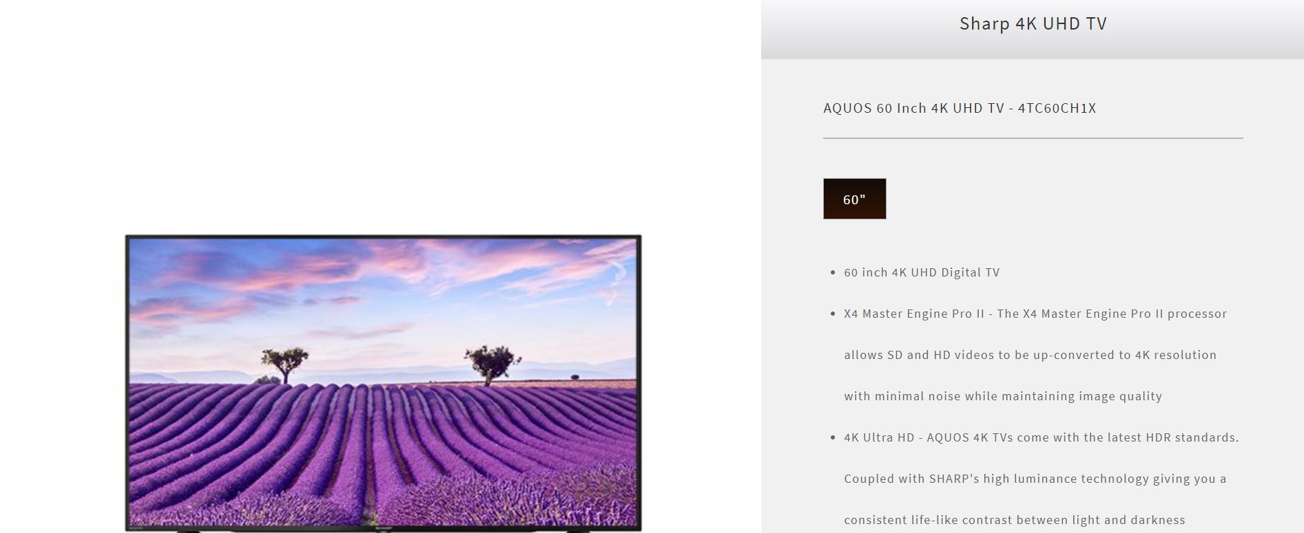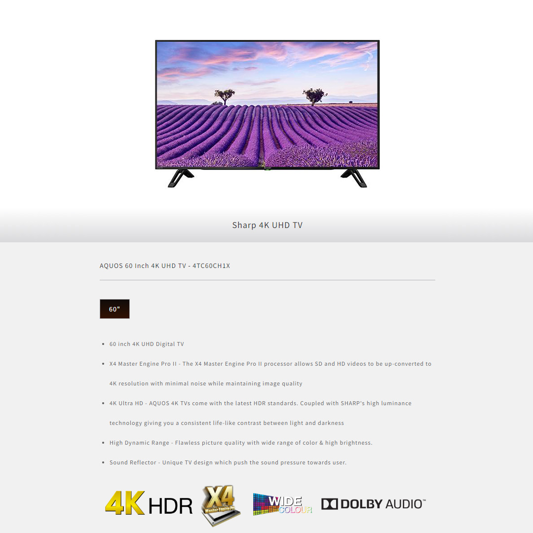 SHARP AQUOS 60" 4K UHD Digital TV 4TC60CH1X | X4 Master Engine Pro II | Sound Reflector | Wide Color | LED TV with 2 Years Warranty