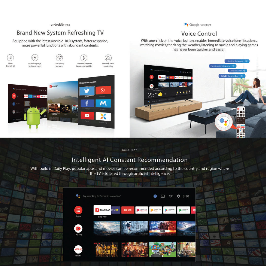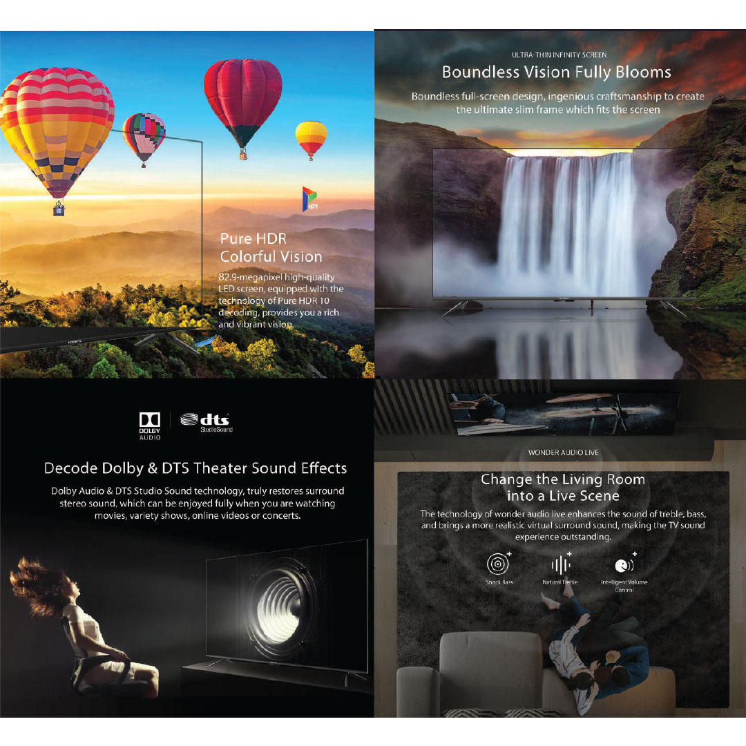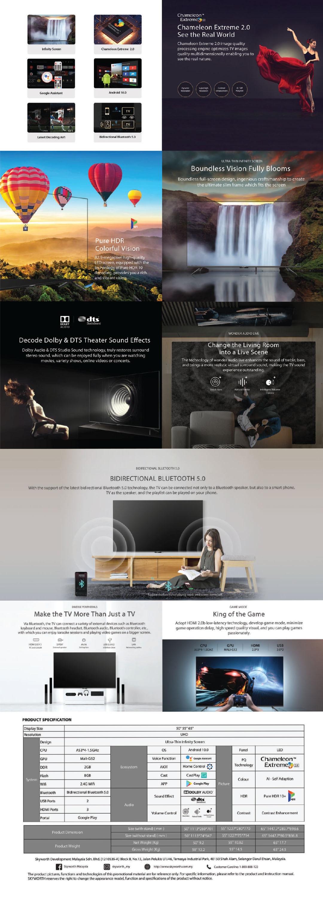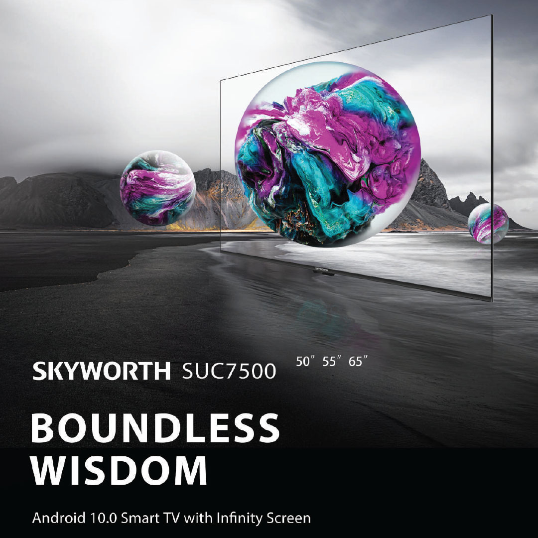 SKYWORTH 65" 4K UHD Android Boundless Wisdom LED TV 65SUC7500 | Android10.0 | Game Mode | HDR10 | Dolby Digital | Google Assistant | Google Store | Chromecast | Bluetooth 5.0 | HDMI | USB | LED TV with 2 Year Warranty