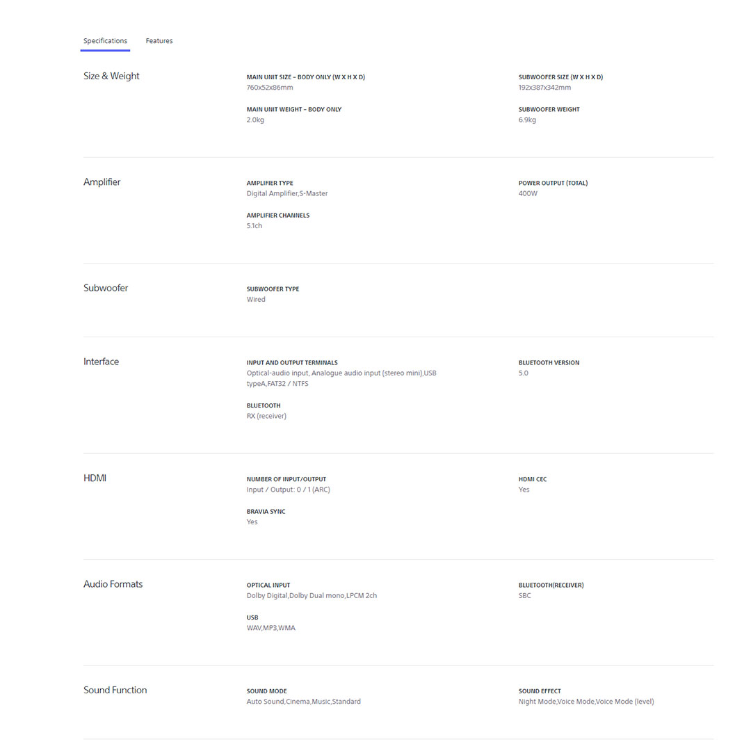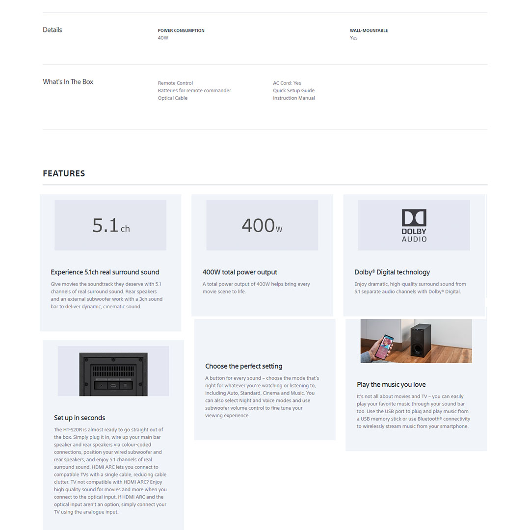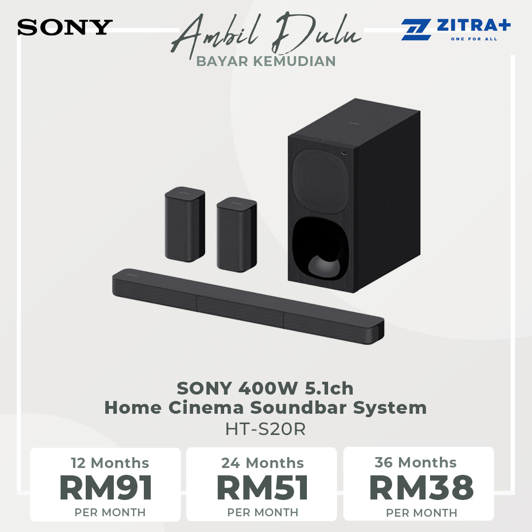 SONY 400W 5.1ch Home Cinema Soundbar System HT-S20R | Digital Amplifier | Bluetooth 5.0 | Dolby Digital | Wired Subwoofer | HDMI | USB | Voice Mode | Soundbar with 1 Year Warranty