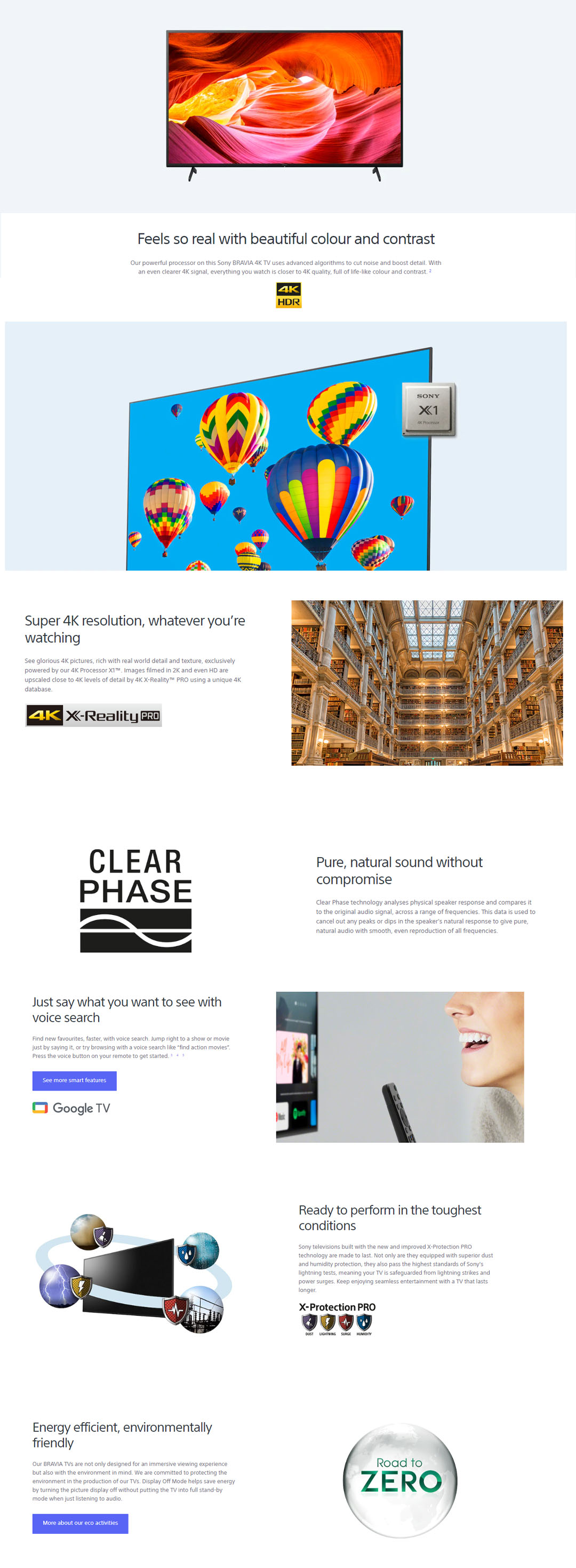 SONY 50" 4K UHD High Dynamic Range (HDR) Smart TV (Google TV) KD-50X75K | 4K Processor X1 | Clear Phase Technology | Voice Search | X-Protection PRO | Smart TV with 2 Year Warranty
