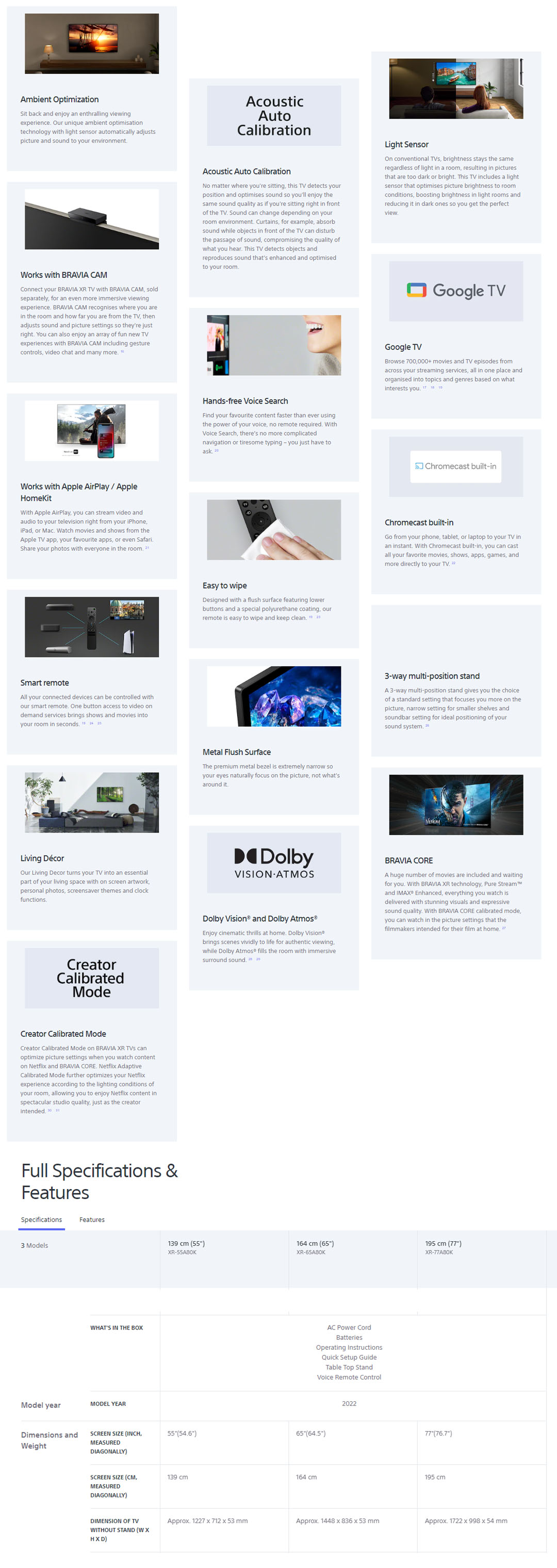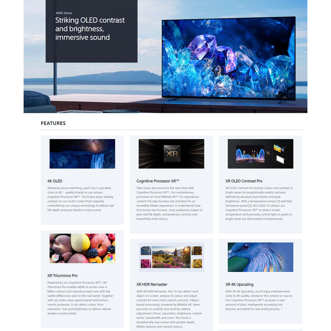 SONY 55" BRAVIA XR OLED 4K UHD High Dynamic Range (HDR) Smart TV (Google TV) XR-55A80K | USB | HDMI | Bluetooth | Voice Zoom 2 | Smart Remote | Chromecast Built-In | Dolby Vision | Voice Search | Smart TV with 2 Year Warranty