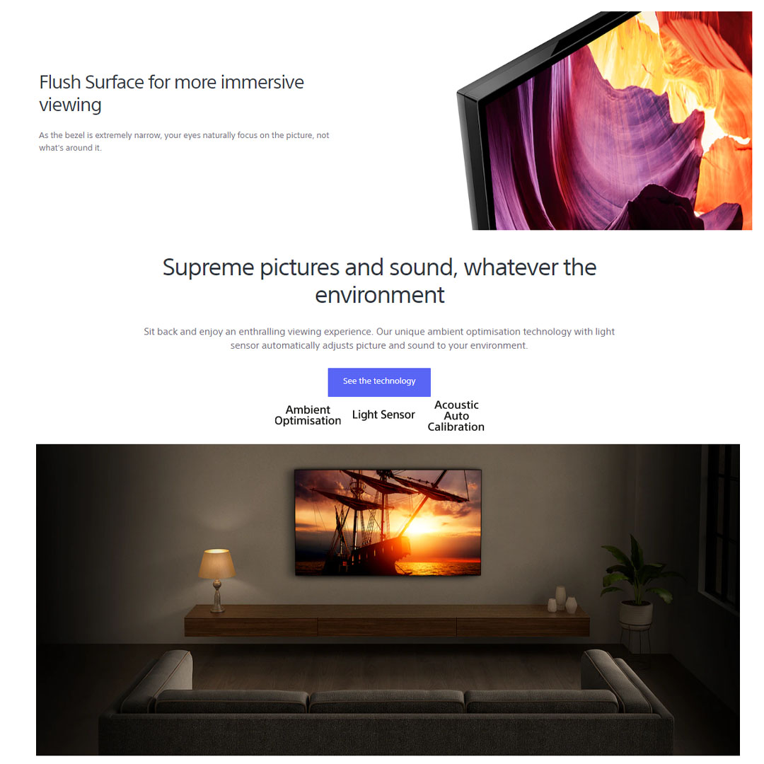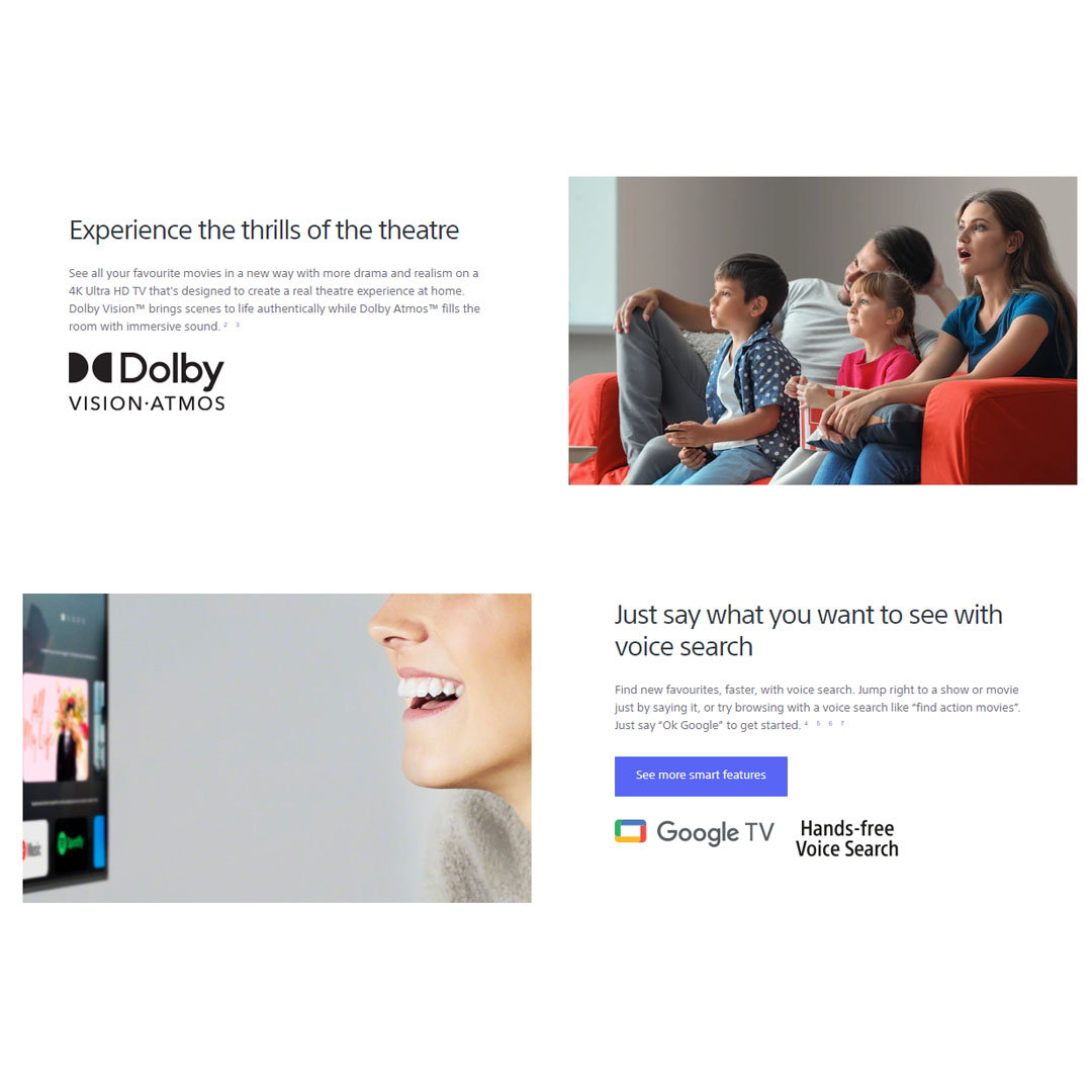 SONY 65" 4K UHD High Dynamic Range (HDR) Smart TV (Google TV) KD-65X80K | USB | Bluetooth | Dolby Audio | Chromecast Built-In | HDMI | Voice Search | Sleep Timer | Android TV | Smart TV with 2 Year Warranty