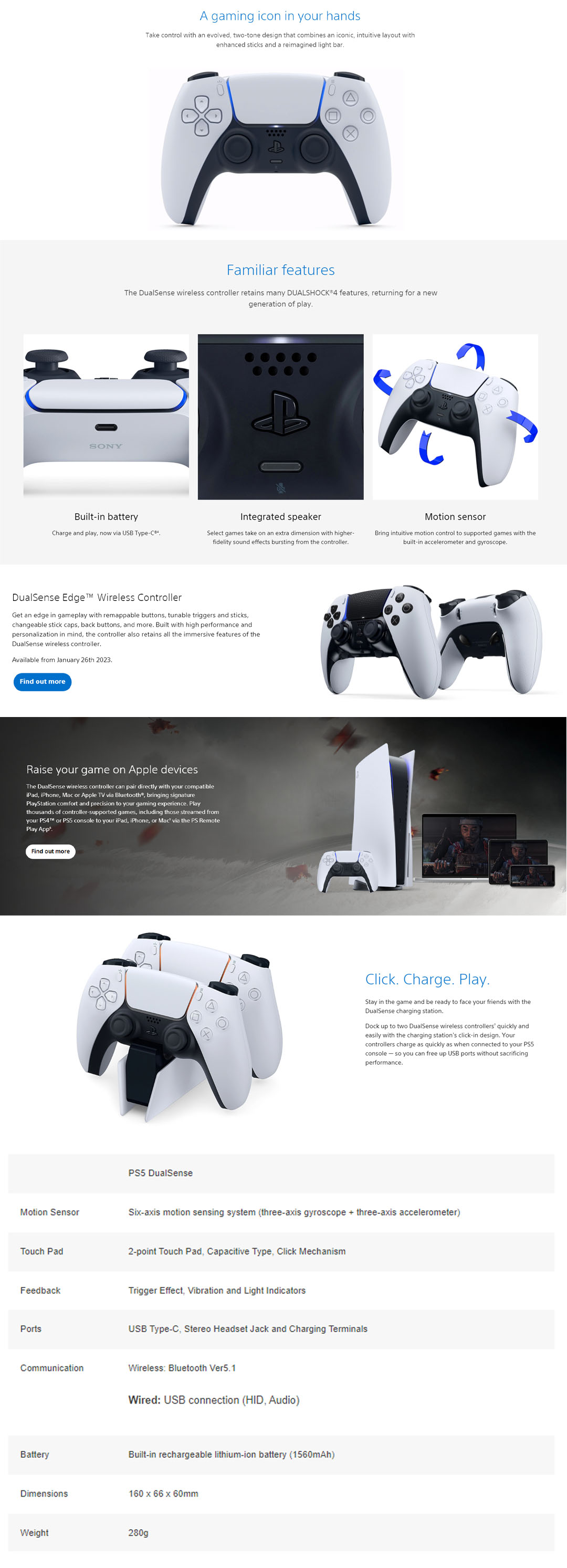 SONY Dualsense Wireless Controller | 2-Point Touch Pad | USB Type-C | Bluetooth 5.1 | Accelerometer | Gyroscope | Controller with 1 Year Warranty