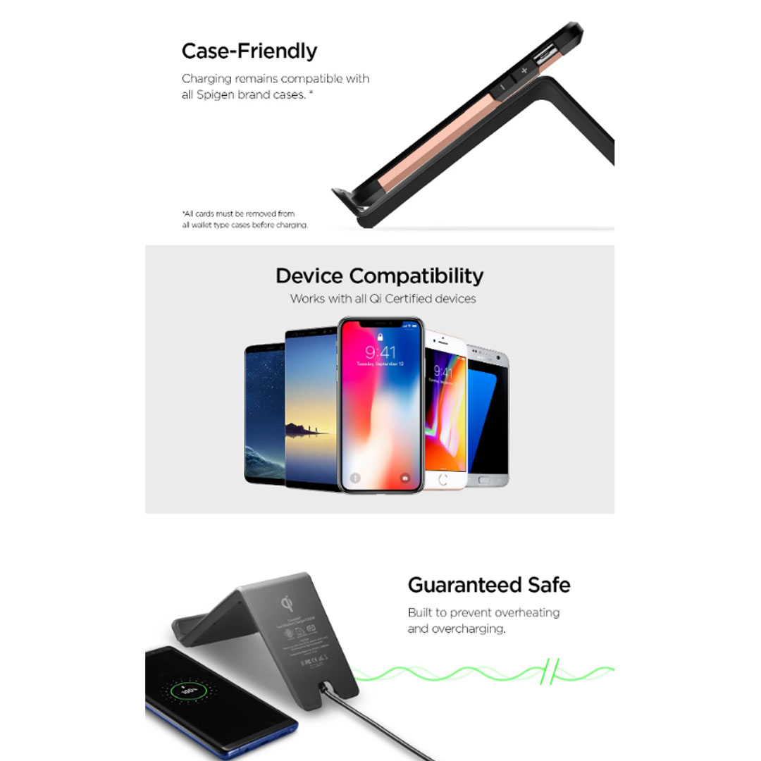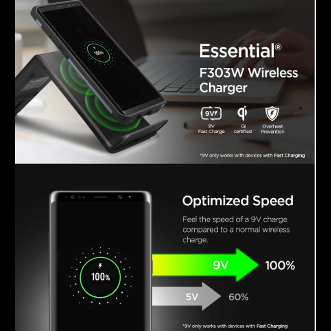 Spigen Essential Qi Wireless Charger (9w) F303W | Qi Certified | Overheat Prevention | Fast Charging
