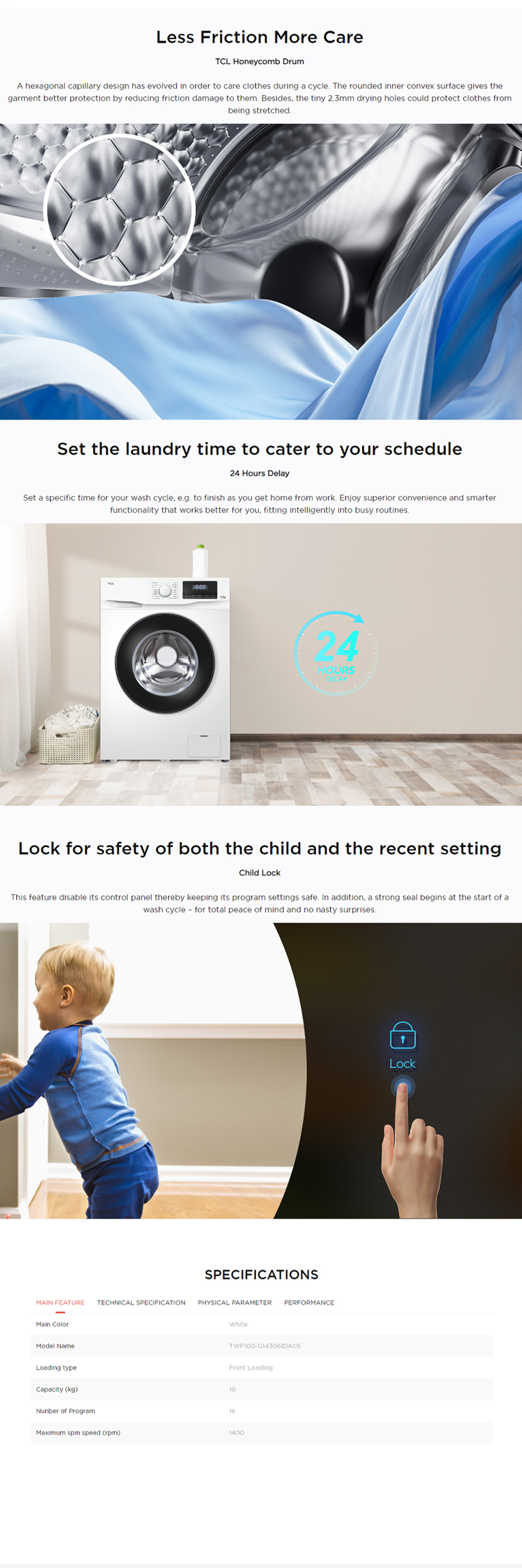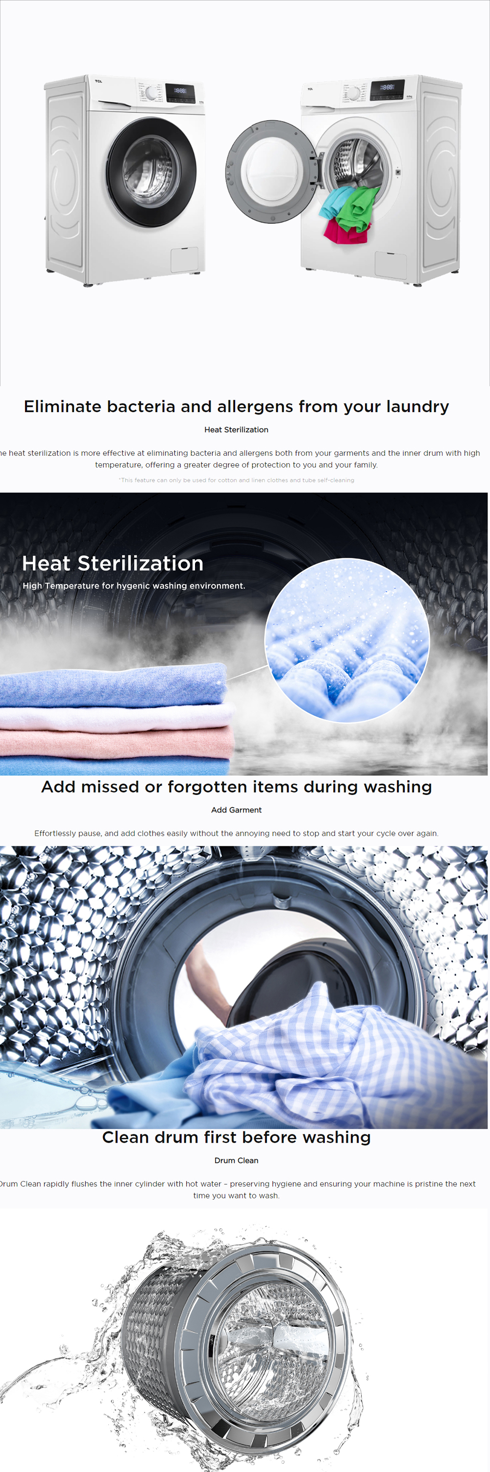 TCL 8KG/10KG Steam Front Load Inverter Washing Machine TWF80-MP6B/TWF100-MP6B | Inverter Motor | Steam Wash | Heat Sterilization | 2 Year General Warranty 3 Year Panel Warranty 10 Year Motor Warranty