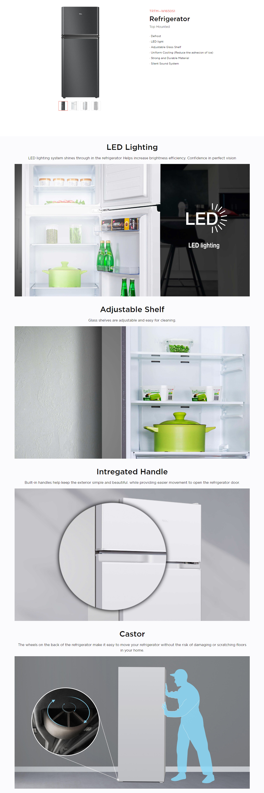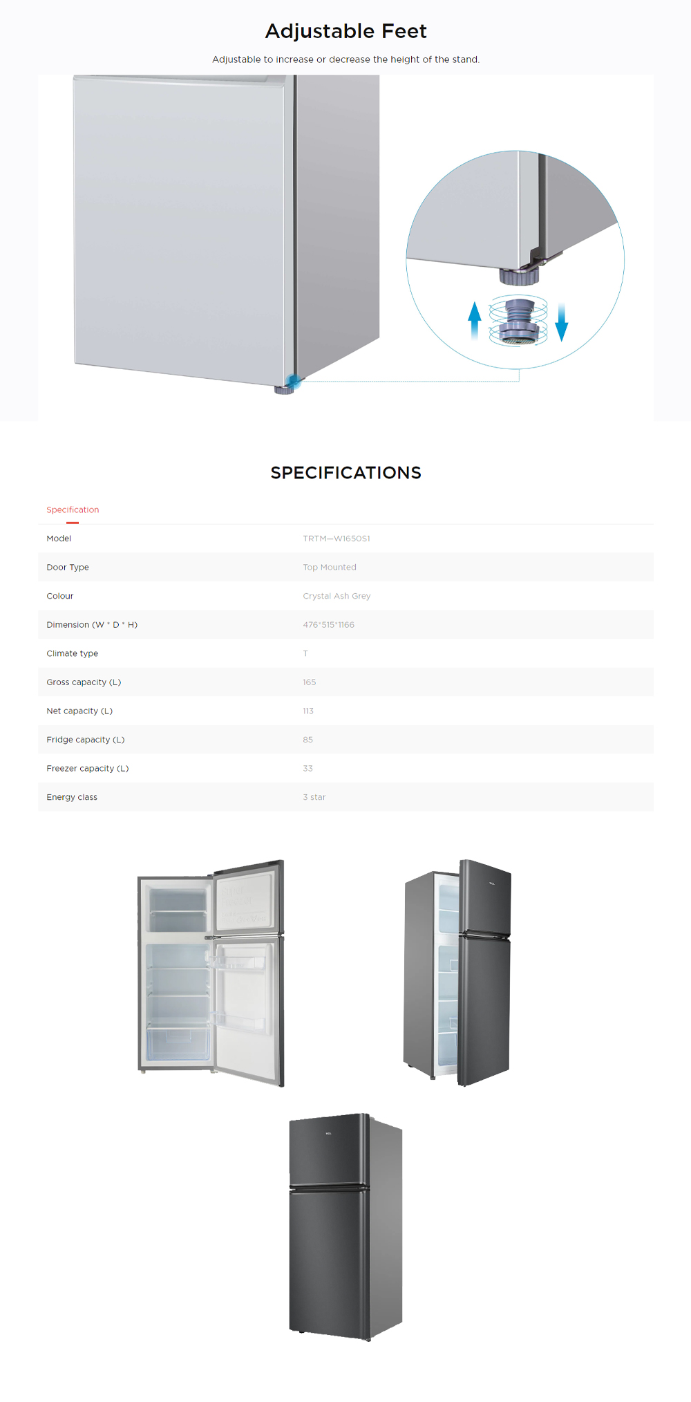 TCL 165L 2 Door Top Mounted Non-Inverter Refrigerator Crystal TRTM-W1650S1| Defrost | LED light | Strong and Durable Material | 2 Year General Warranty 10 Year Motor Warranty