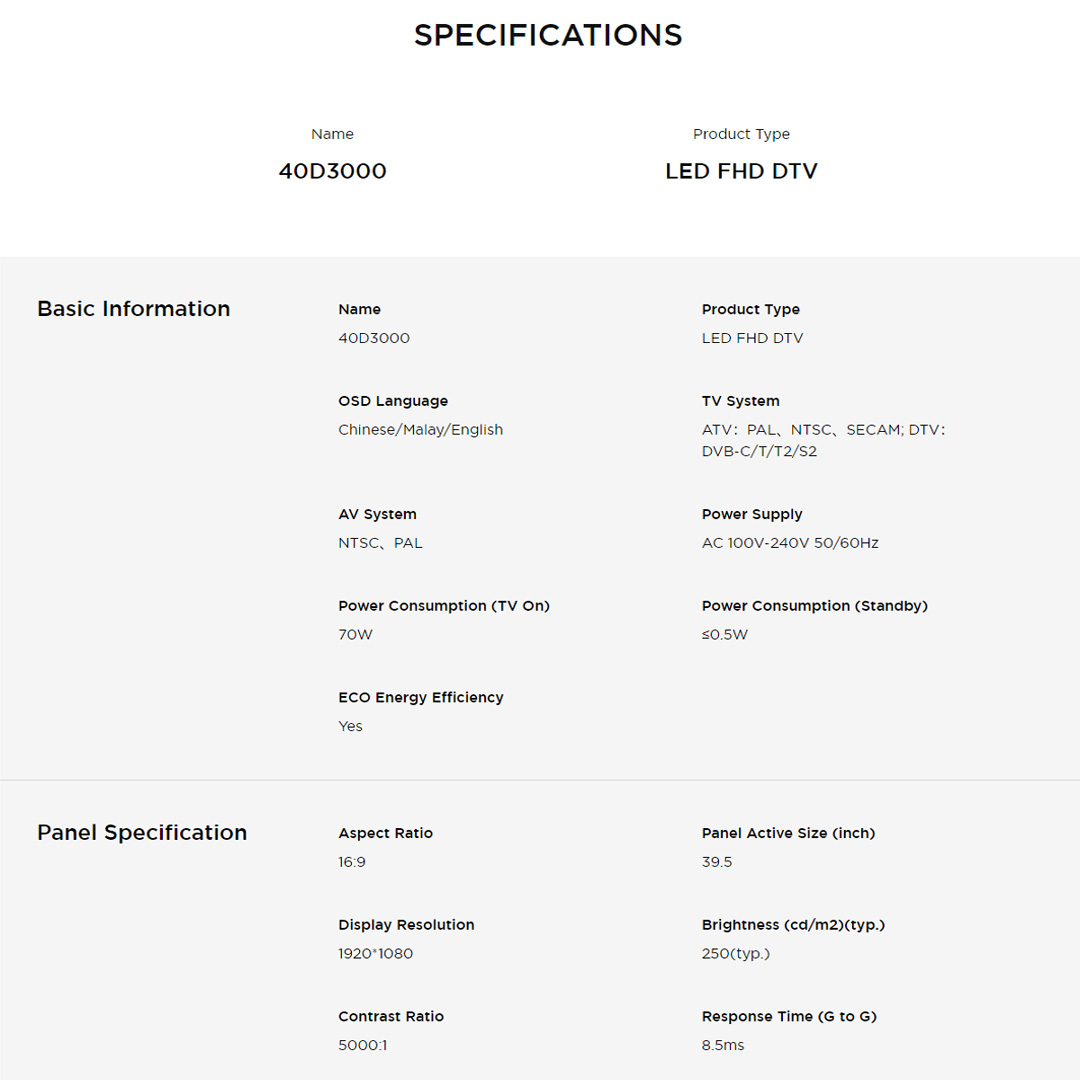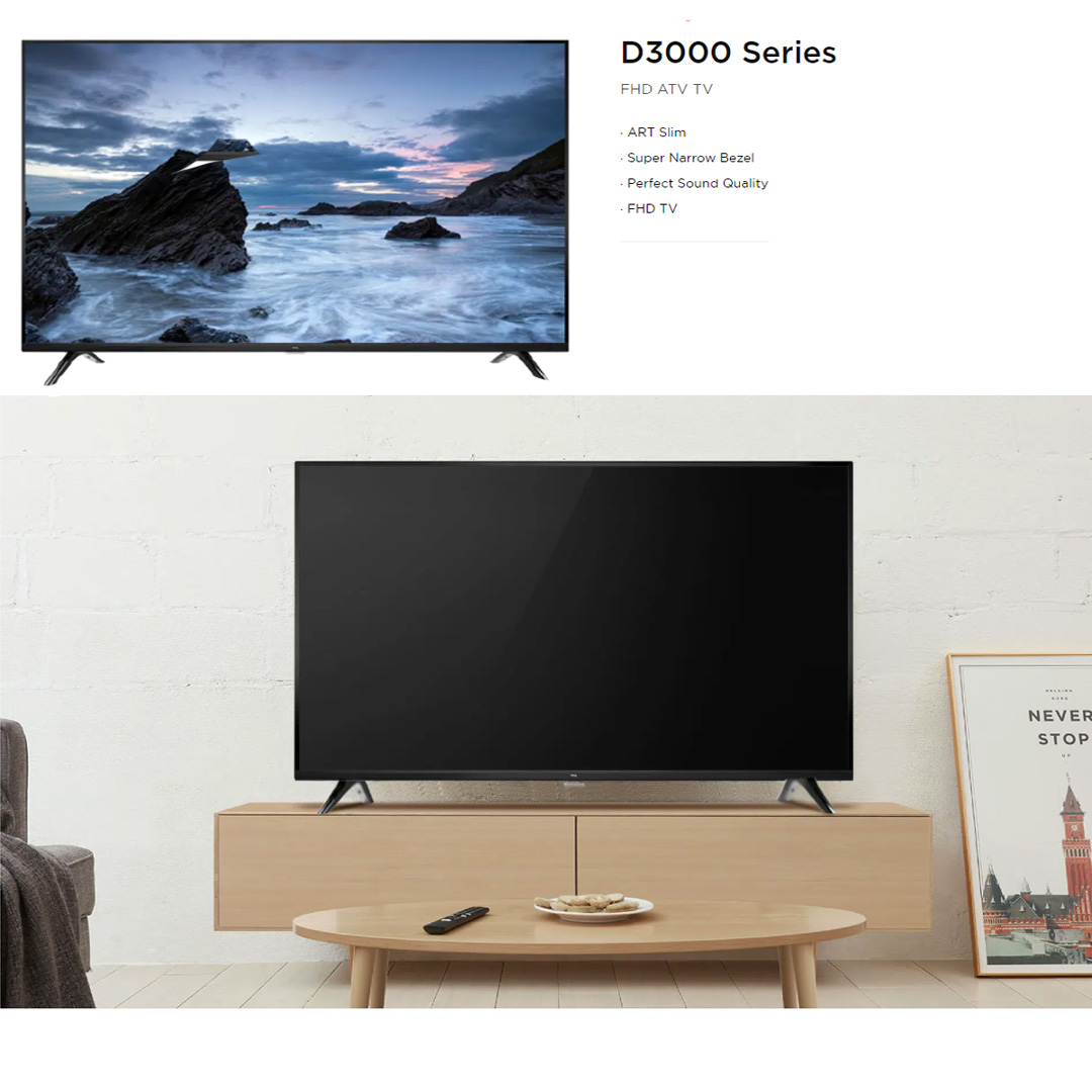 TCL 40" FHD LED TV 40D3000 | Sleep Timer | Teletext | EPG | Treble/Bass | Dolby Audio | Slim Design | LED TV with 2 Year Warranty