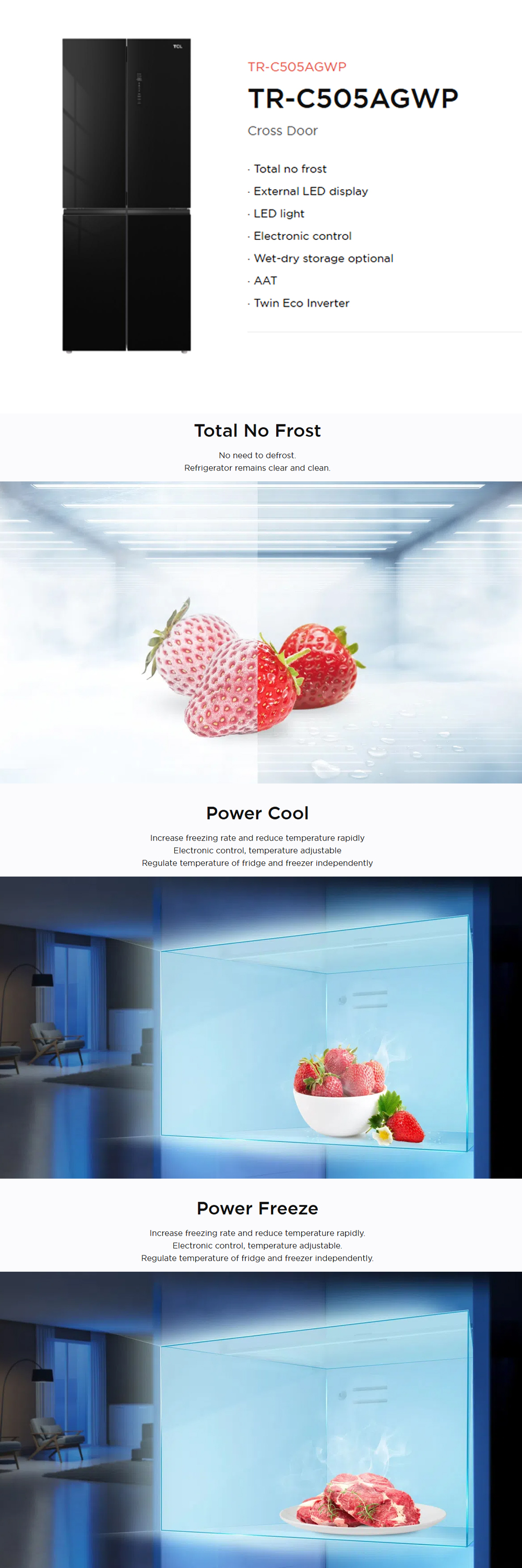 TCL 505L Twin Eco Inverter Multi Doors Refrigerator TR-C505AGWP | Total no frost | External LED display | LED light