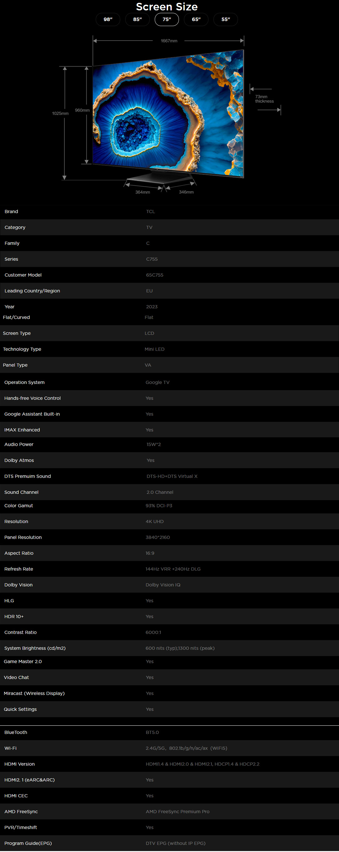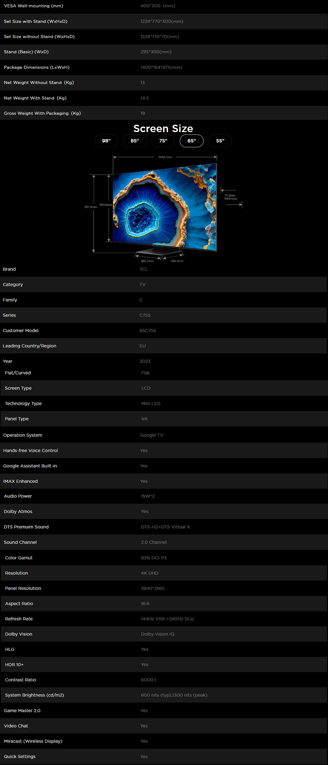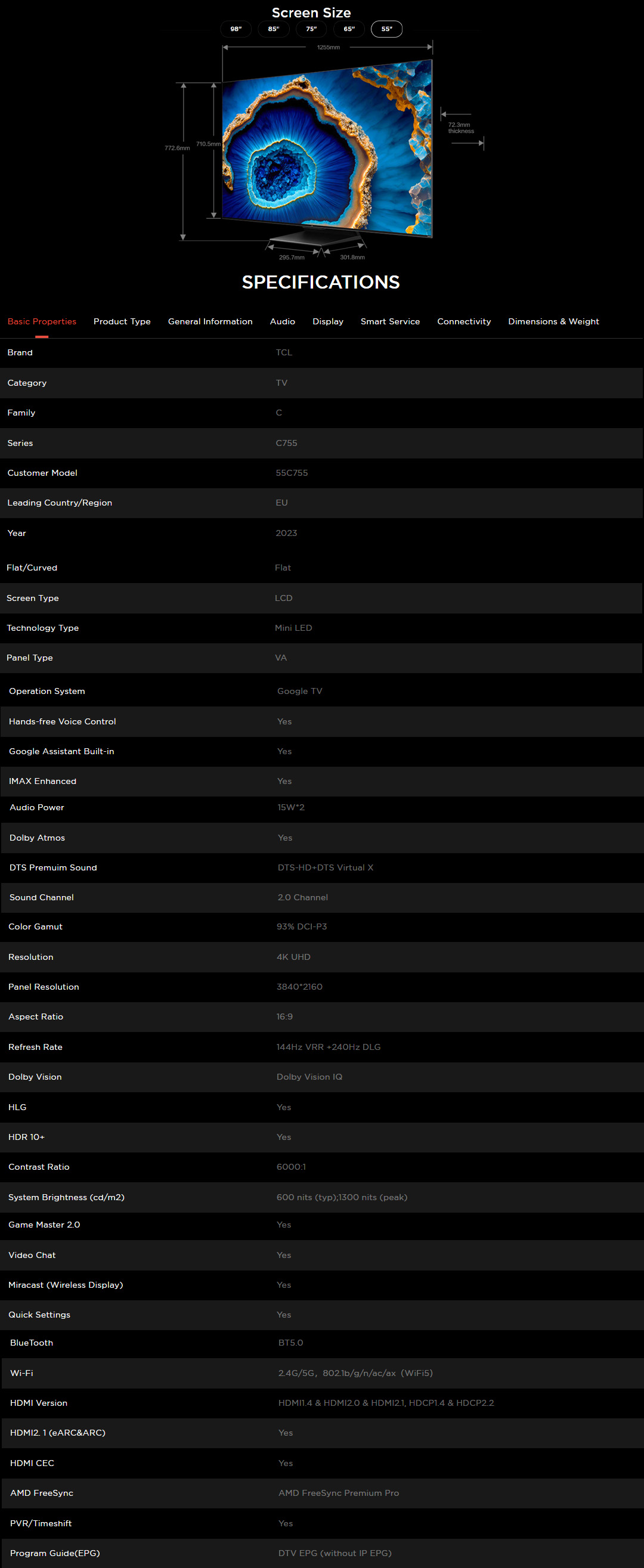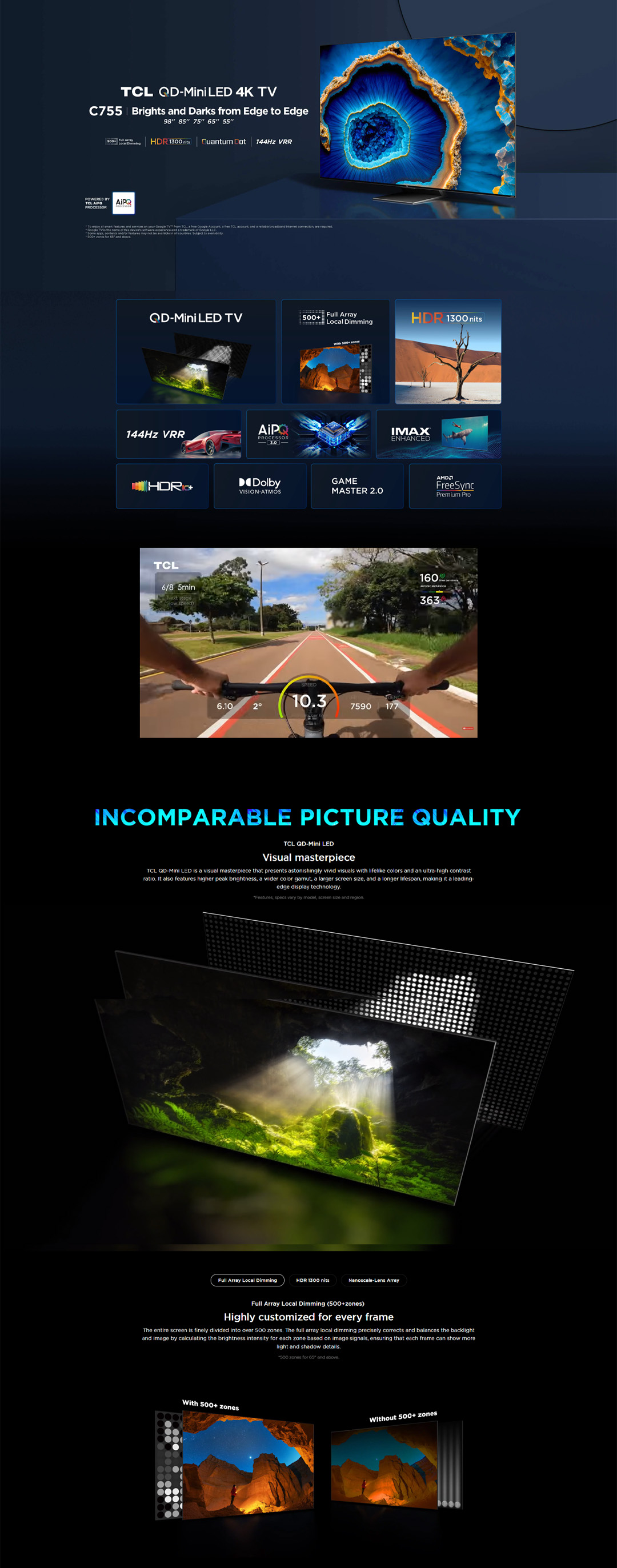 TCL 55" / 65" /75" / 85" / 98" 4K UHD QD-Mini LED Google TV | 55C755 / 65C755 / 75C755 / 85C755 / 98C755 | Full Array Local Dimming | IMAX Enhanced | Google TV with 2 Year Warranty