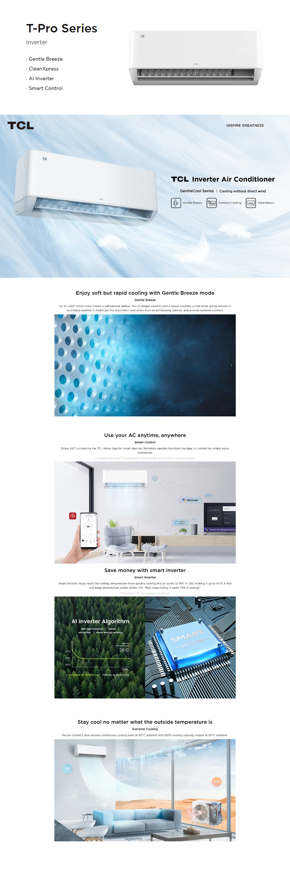 TCL GentleCool T-Pro Series Inverter Air Conditioner TAC-09CSD/ TAC-12CSD/ TAC-18CSD/ TAC-24CSD (TPG21I) | Gentle Breeze | CleanXpress