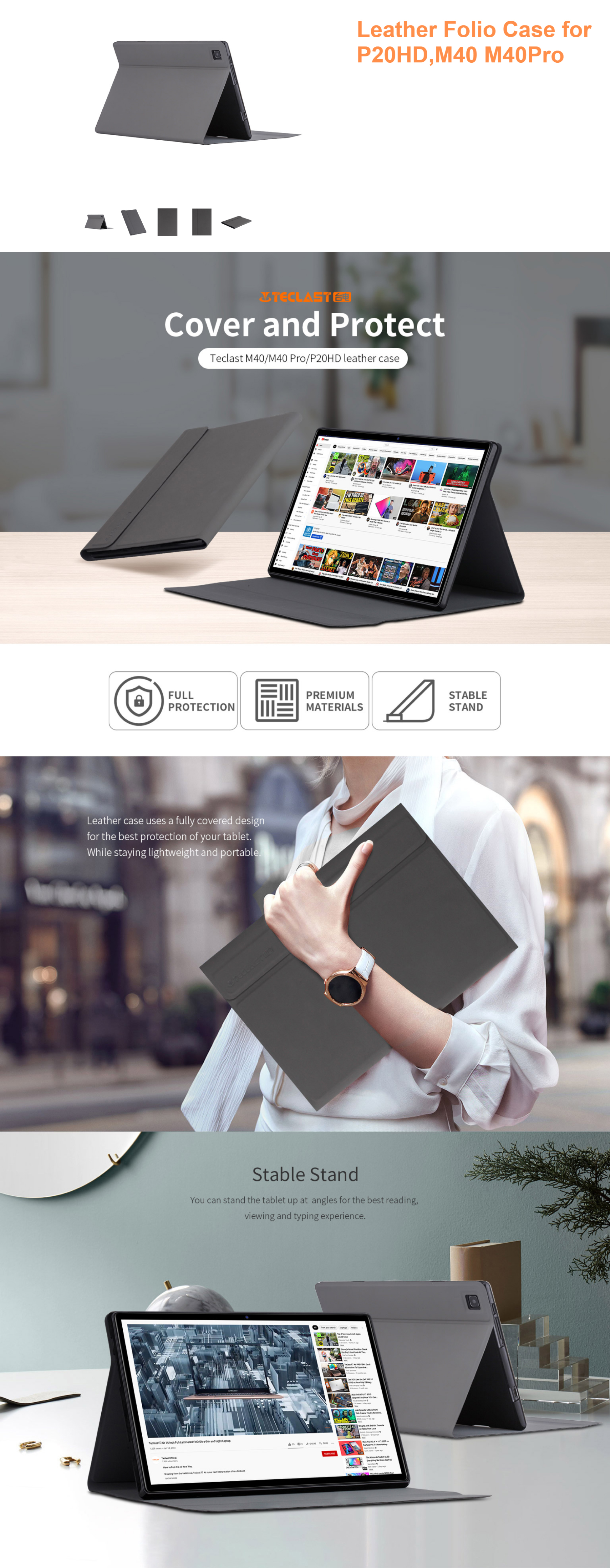 Teclast Leather Folio Case P20HD/M40/M40 Pro 8952W220400001/89640214800001 | Full Protection | Premium Materials | Stable Stand |