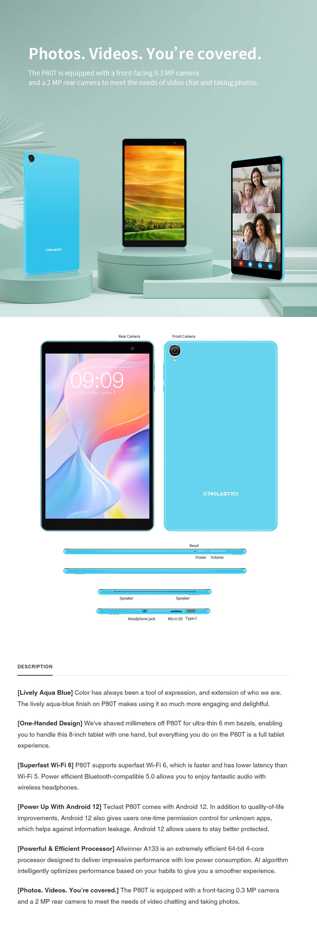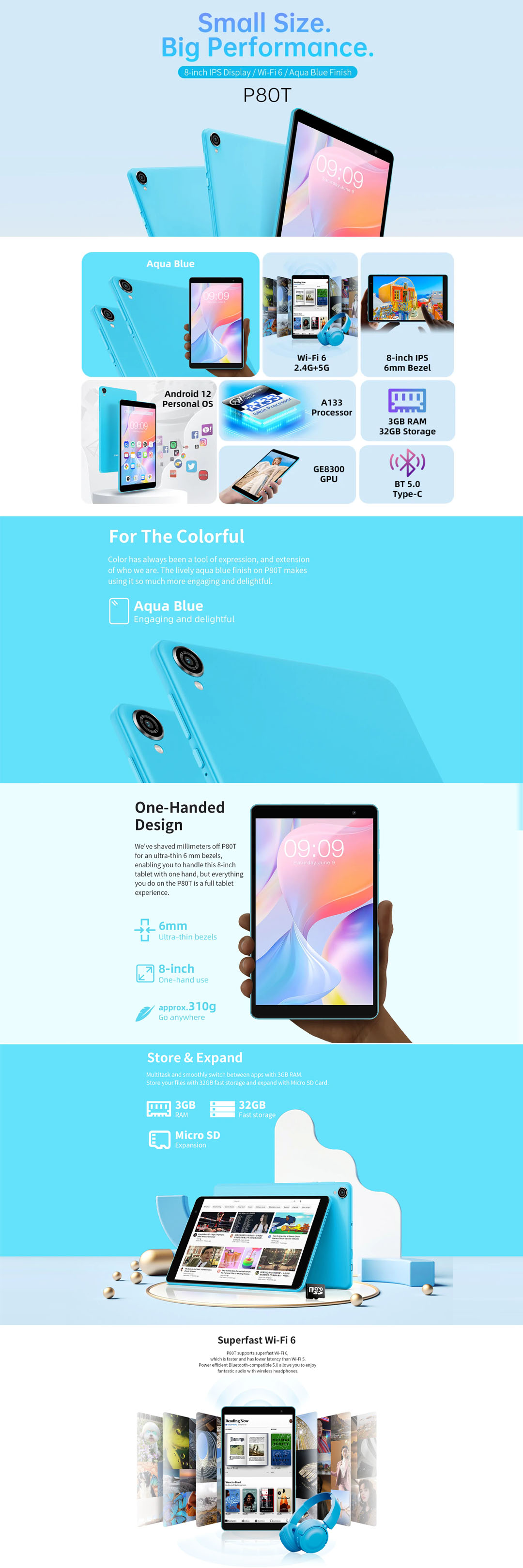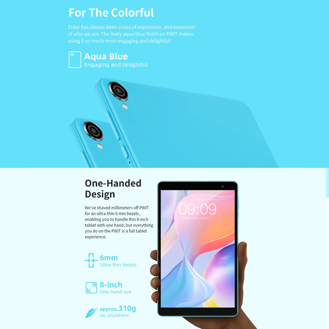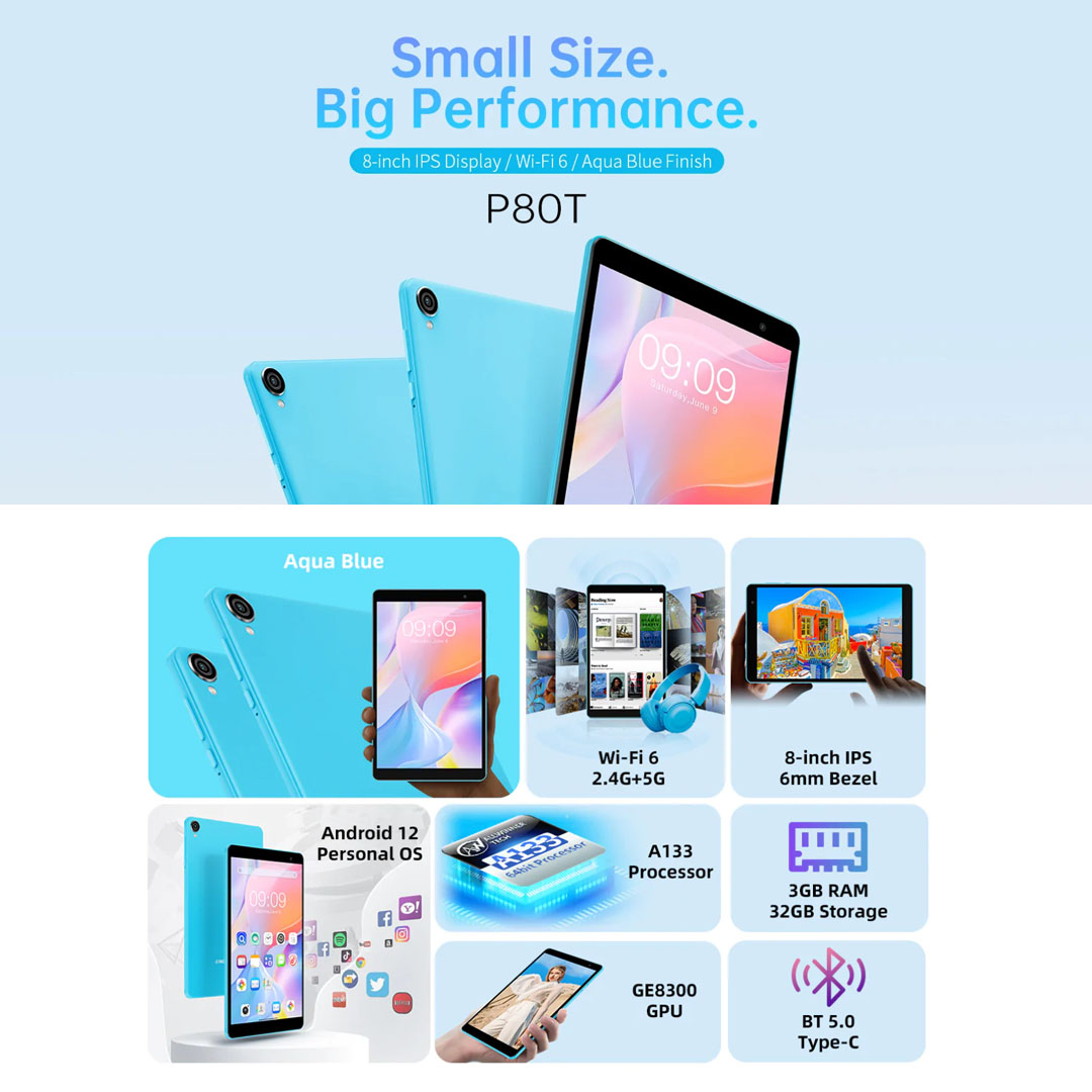 Teclast Tablet P80T Wi-Fi | 3GB+32GB | Superfast Wi-Fi 6 | Android 12 | A133 Processor | Tablet with 1 Year Warranty