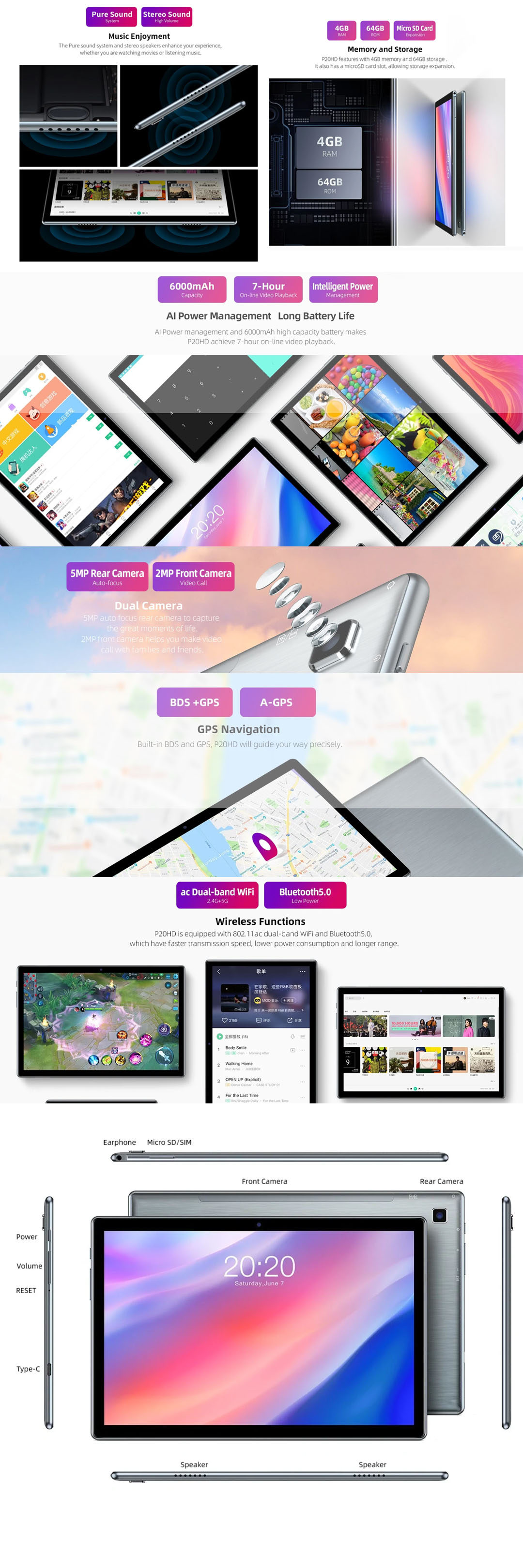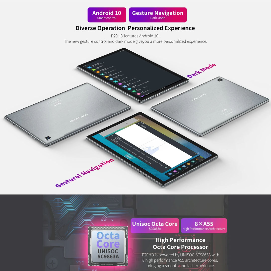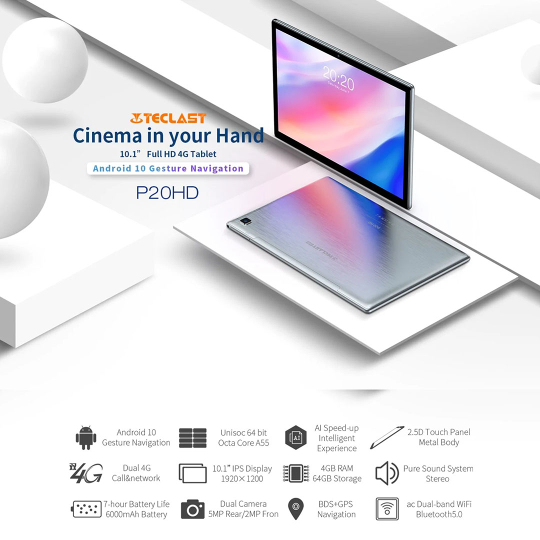 Teclast Tablet PC P20HD | 4GB+64GB | Wifi+Cellular | Unisoc Octa Core CPU | 10.1” Full HD IPS Display | Android 10 OS | Tablet with 1 Year General Warranty