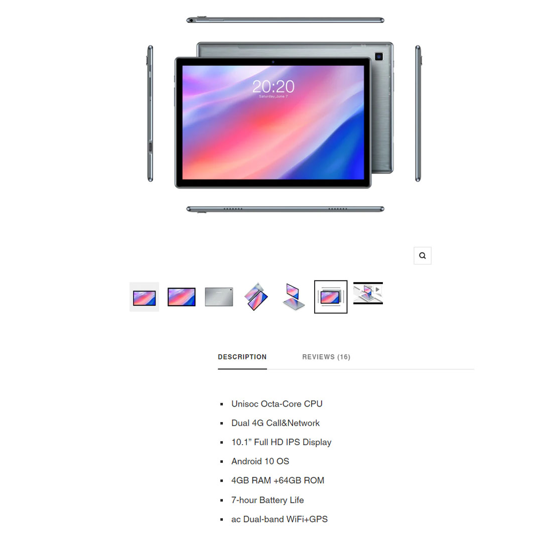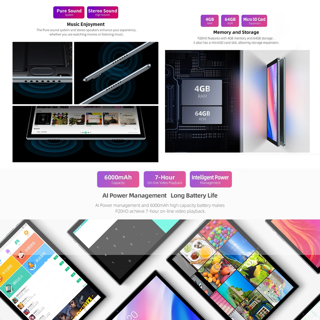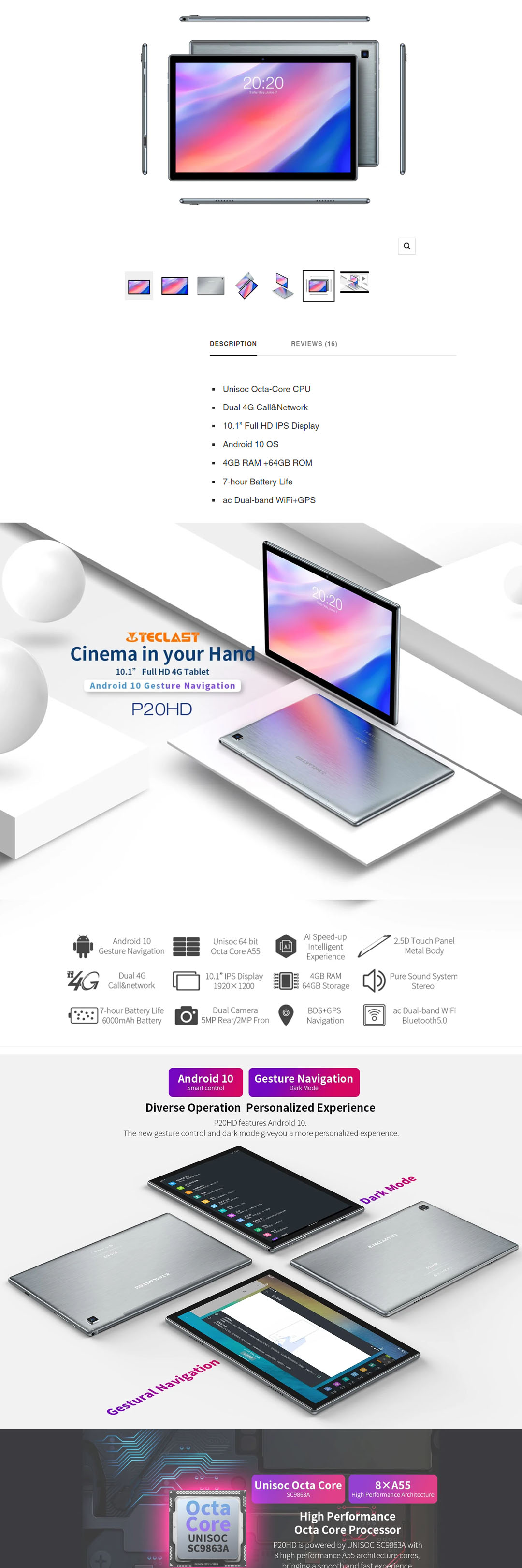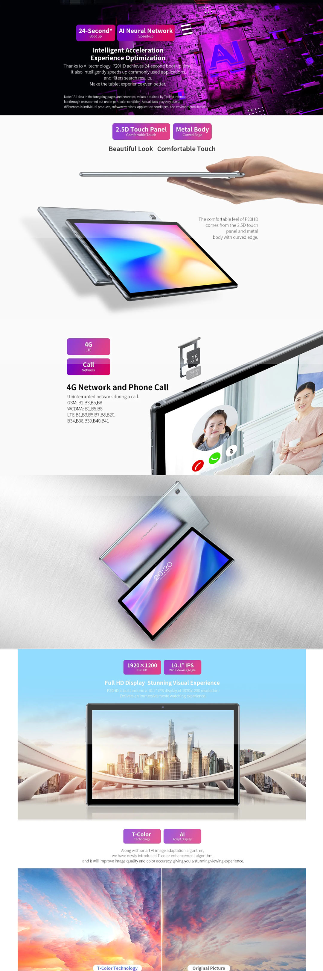 Teclast Tablet PC P20HD | 4GB+64GB | Wifi+Cellular | Unisoc Octa Core CPU | 10.1” Full HD IPS Display | Android 10 OS | Tablet with 1 Year General Warranty