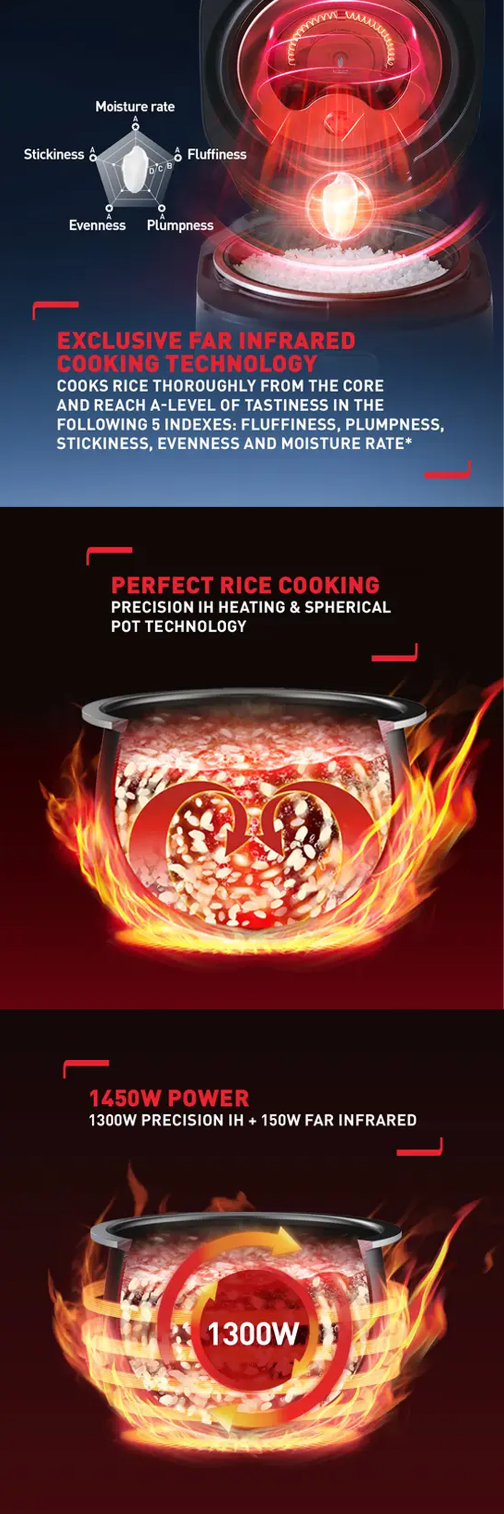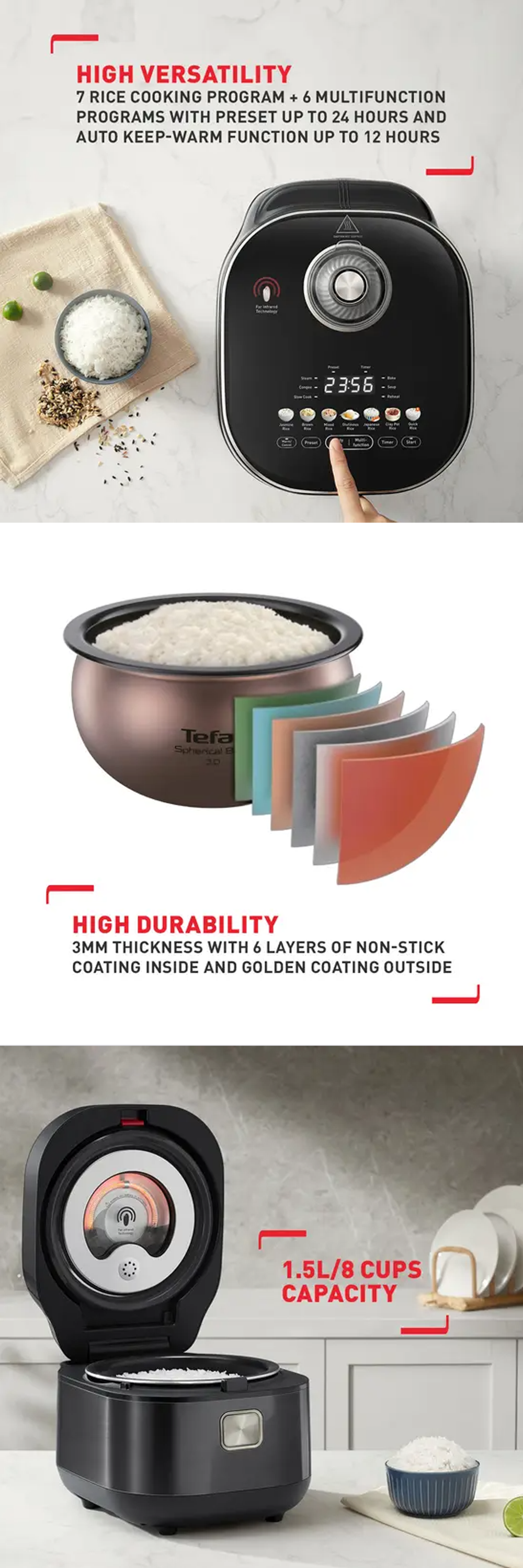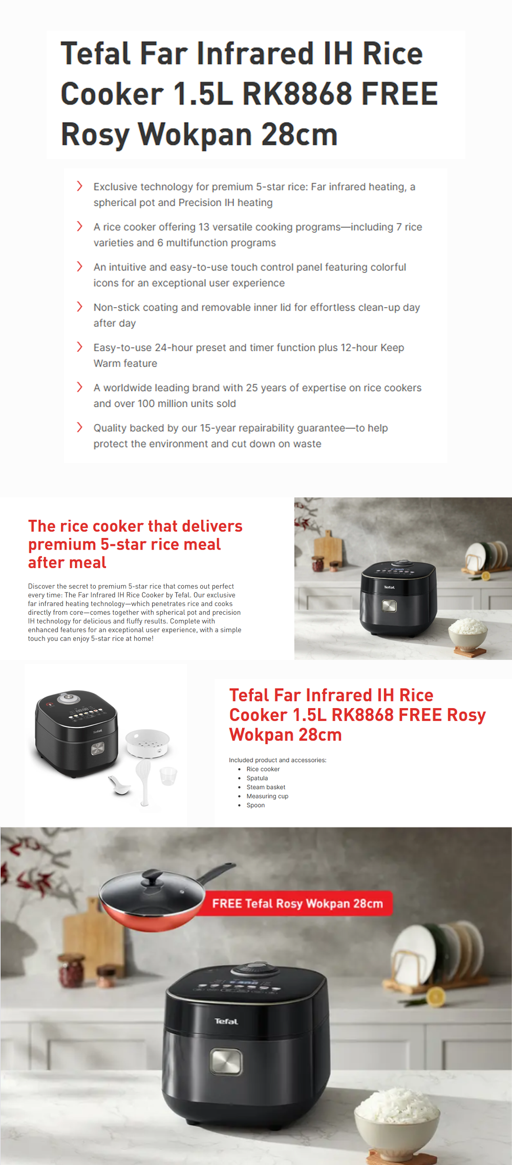 Tefal 1.5L Far Infrared IH Rice Cooker RK8868 | 12-hour Keep Warm feature | Touch control panel | 13 versatile cooking programs