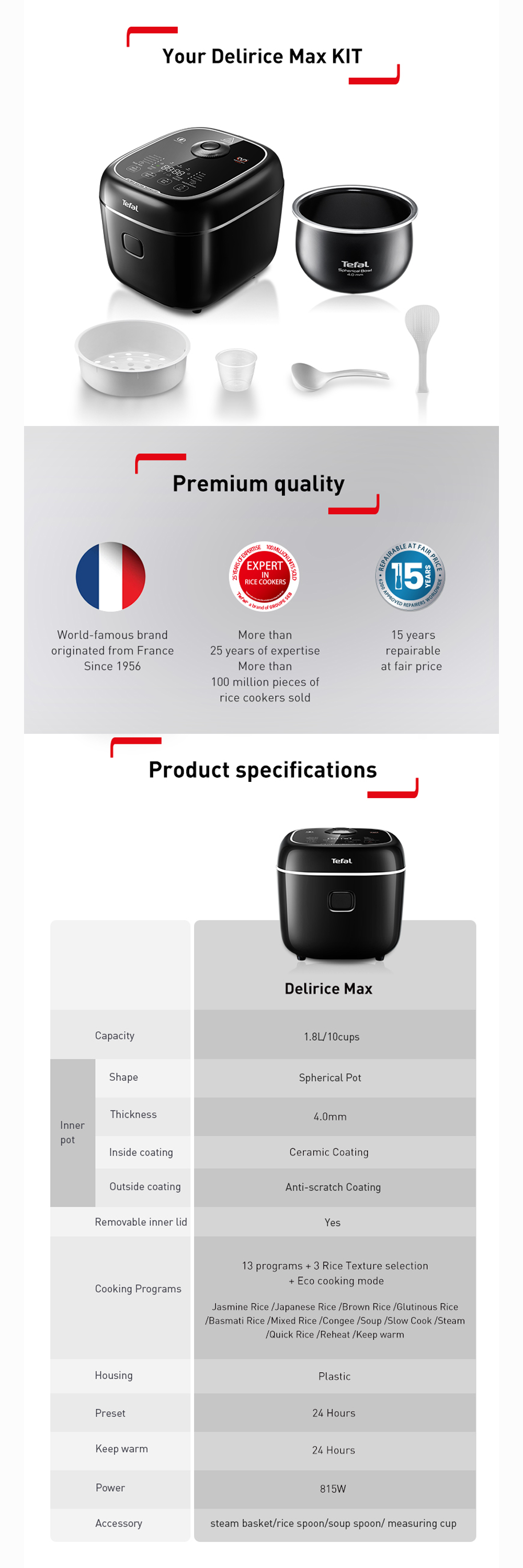 Tefal 1.8L Delirice Max Fuzzy Logic Rice Cooker RK7711 / RK7778 | 3D Max technology | Exclusive spherical pot | Up to 10% energy savings | Smart digital cooking
