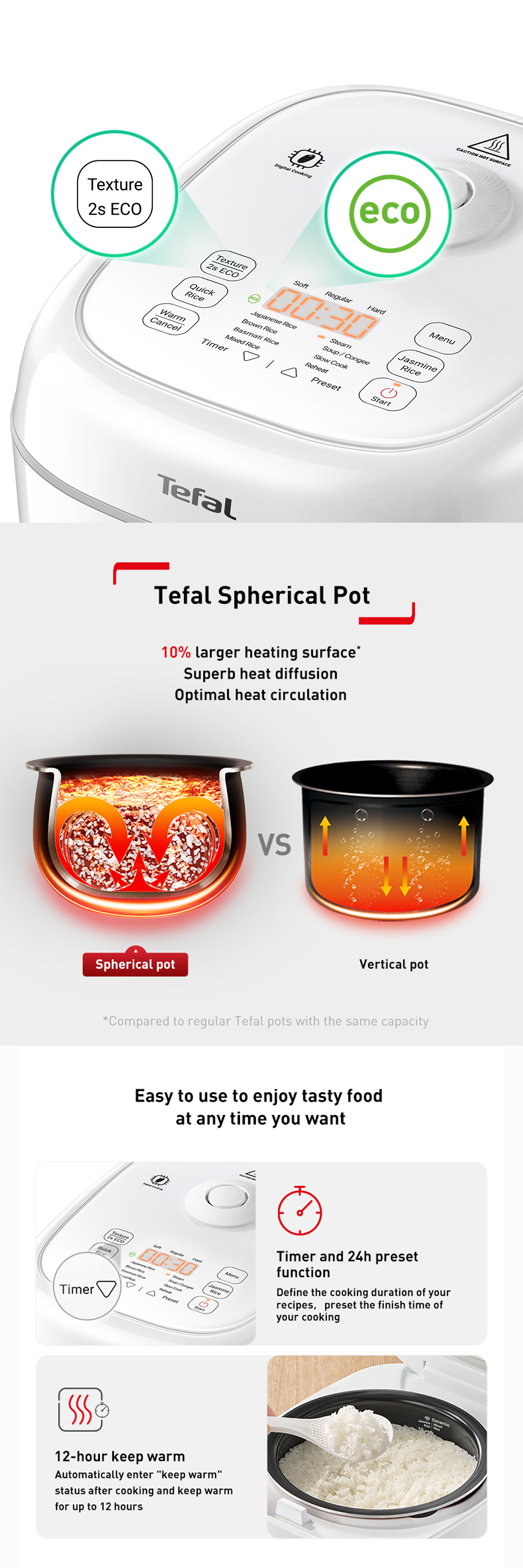 • 3D Max technology delivers evenly cooked rice every time